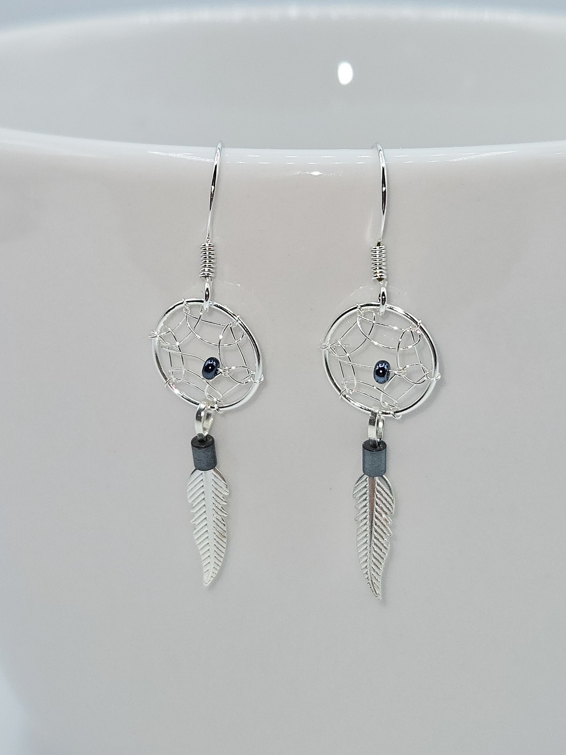 Dream Catcher earrings accented with malachite beads 3.3mm H