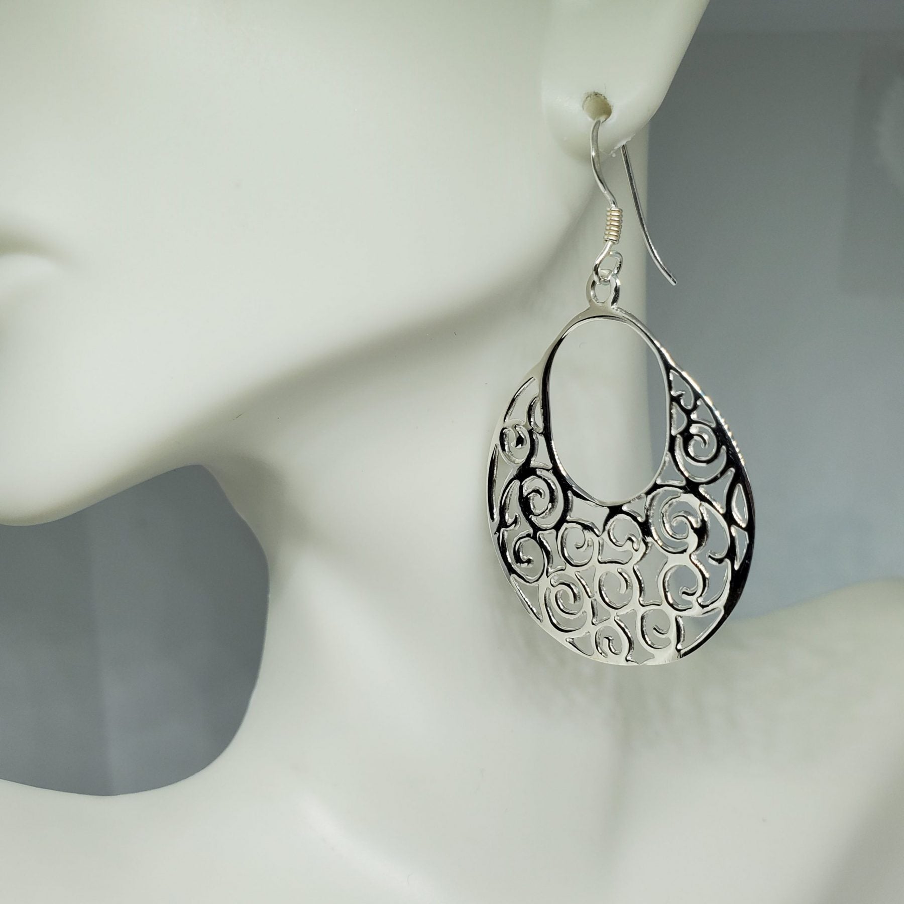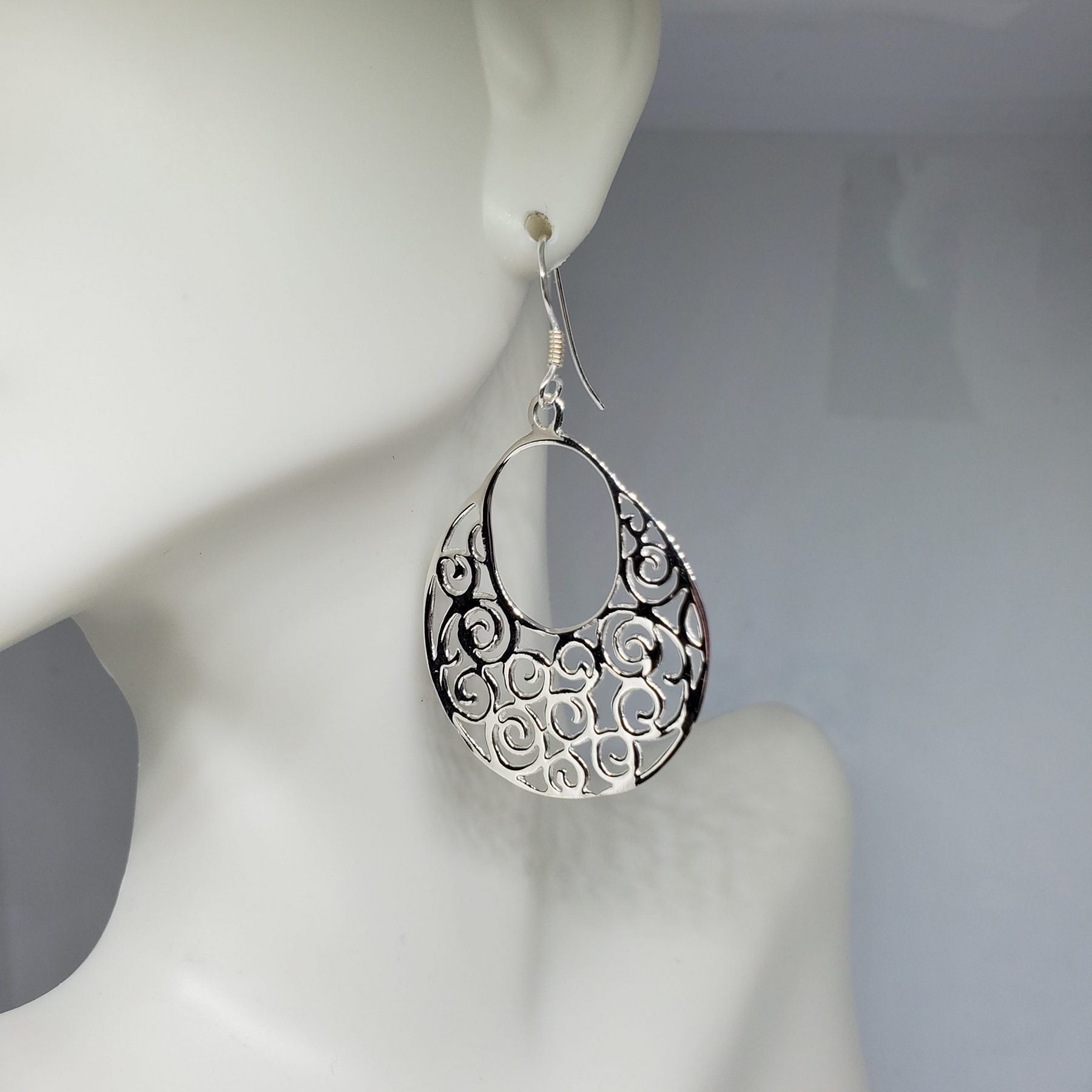 43mm Drop Dangle Swirl .925 Sterling Silver Earrings