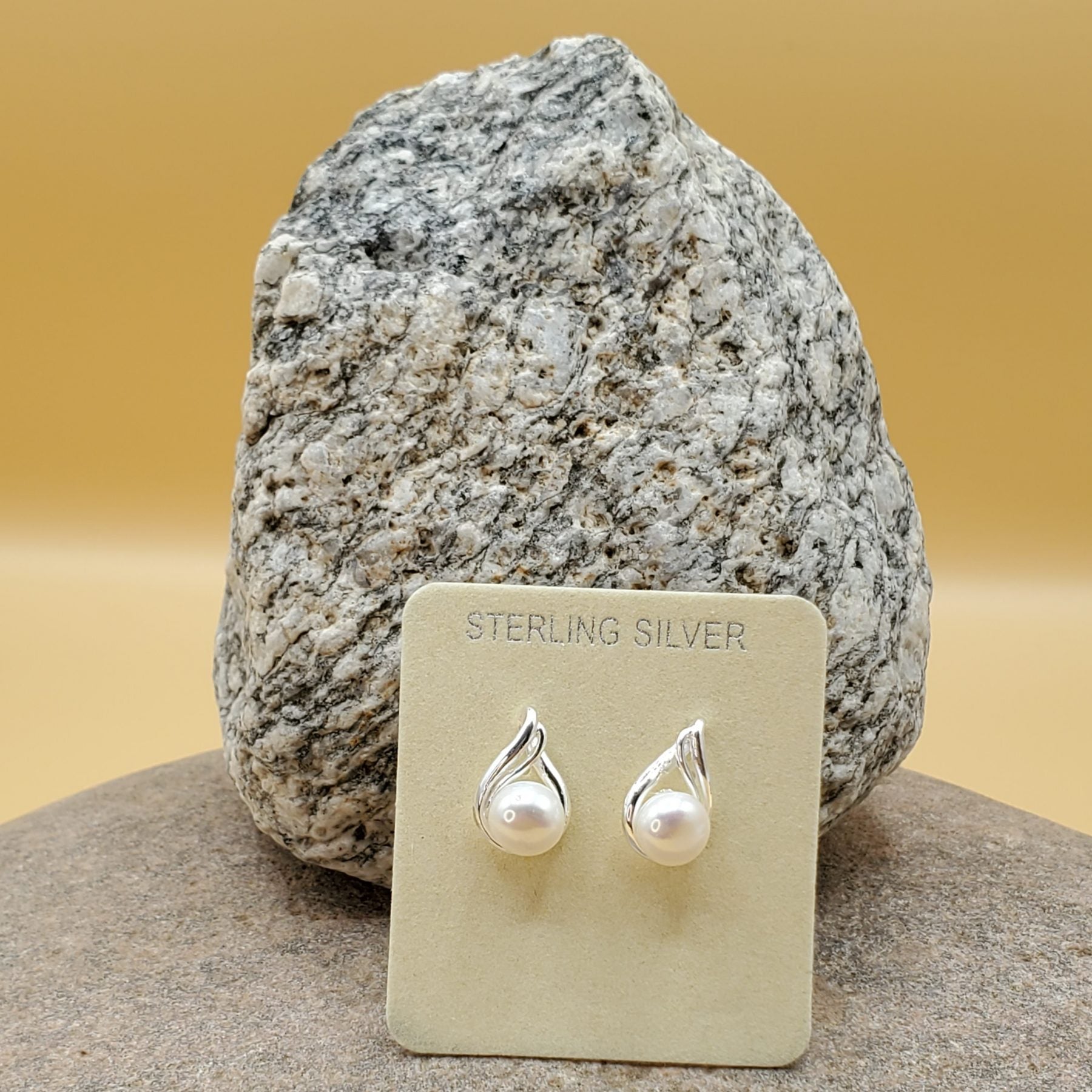 Freshwater Pearl Swirl Design .925 Sterling Silver Earrings.