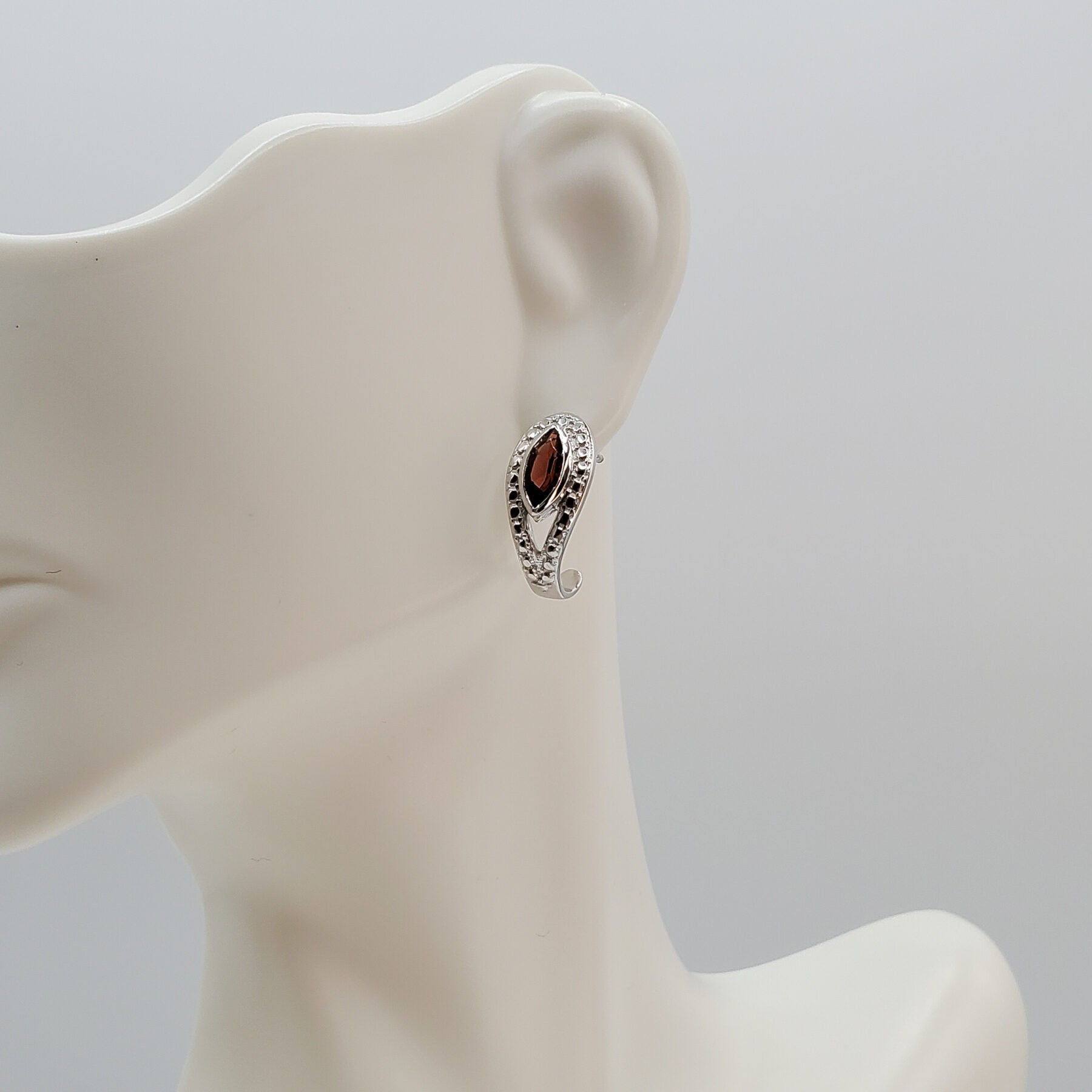 .925 Sterling Silver Filigree huggee earring with a 9mm center stone of garnet.