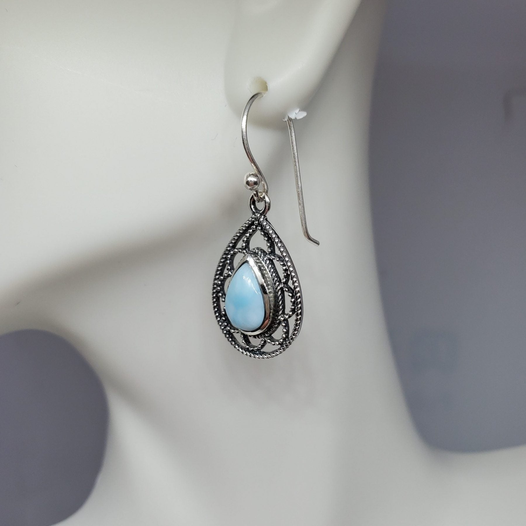 18.6 mm Larimar filigree dangle earring set in .925 silver.