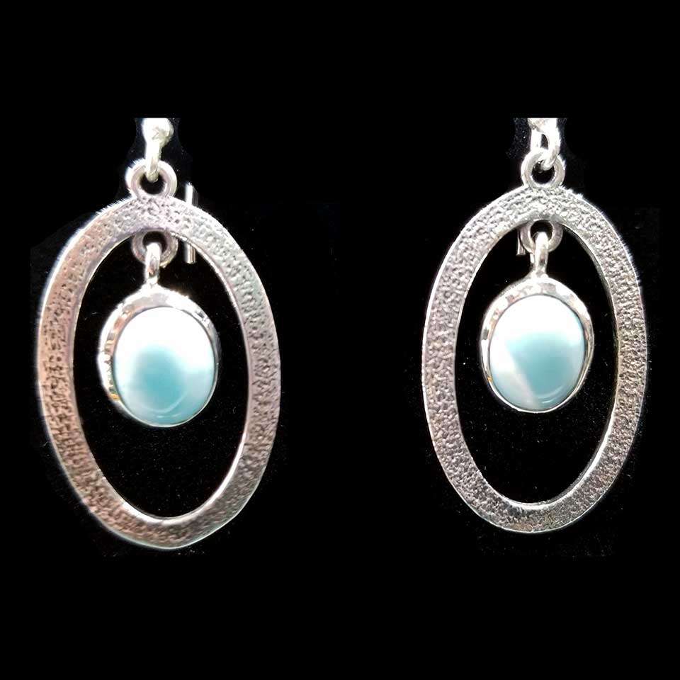 2.5cm .925 silver oval dangle earring accented by 8.4mm larimar gemstone.