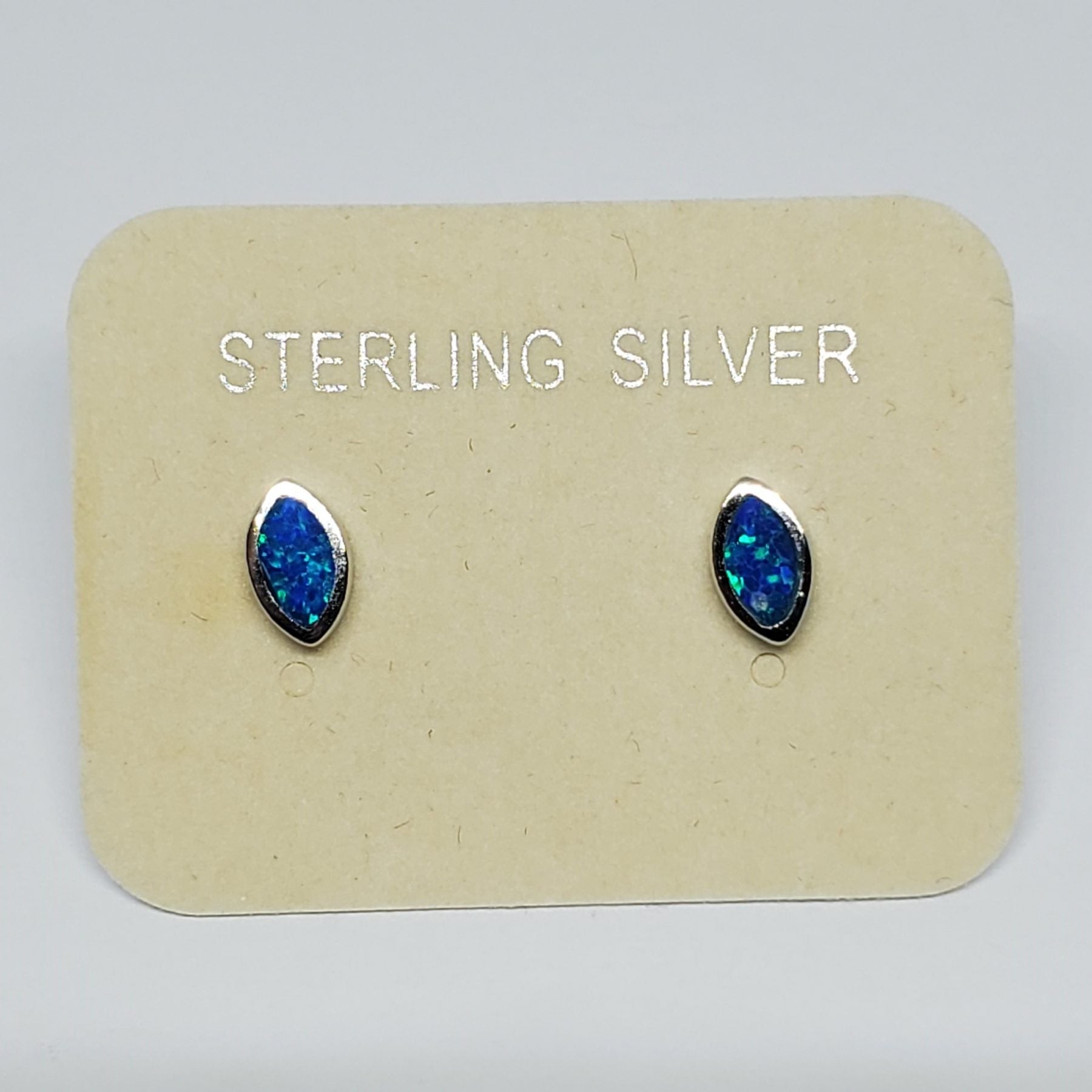 Delicate 5.4mm L Marquise Cut Blue Opal Stud Earrings.