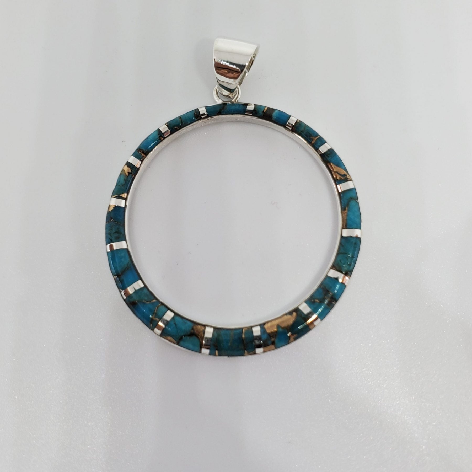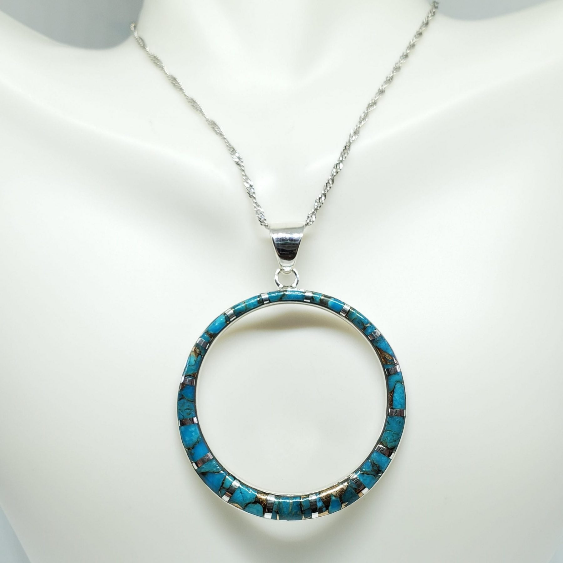 Matrix Turquoise Sterling Silver Circle of Life Pendant.