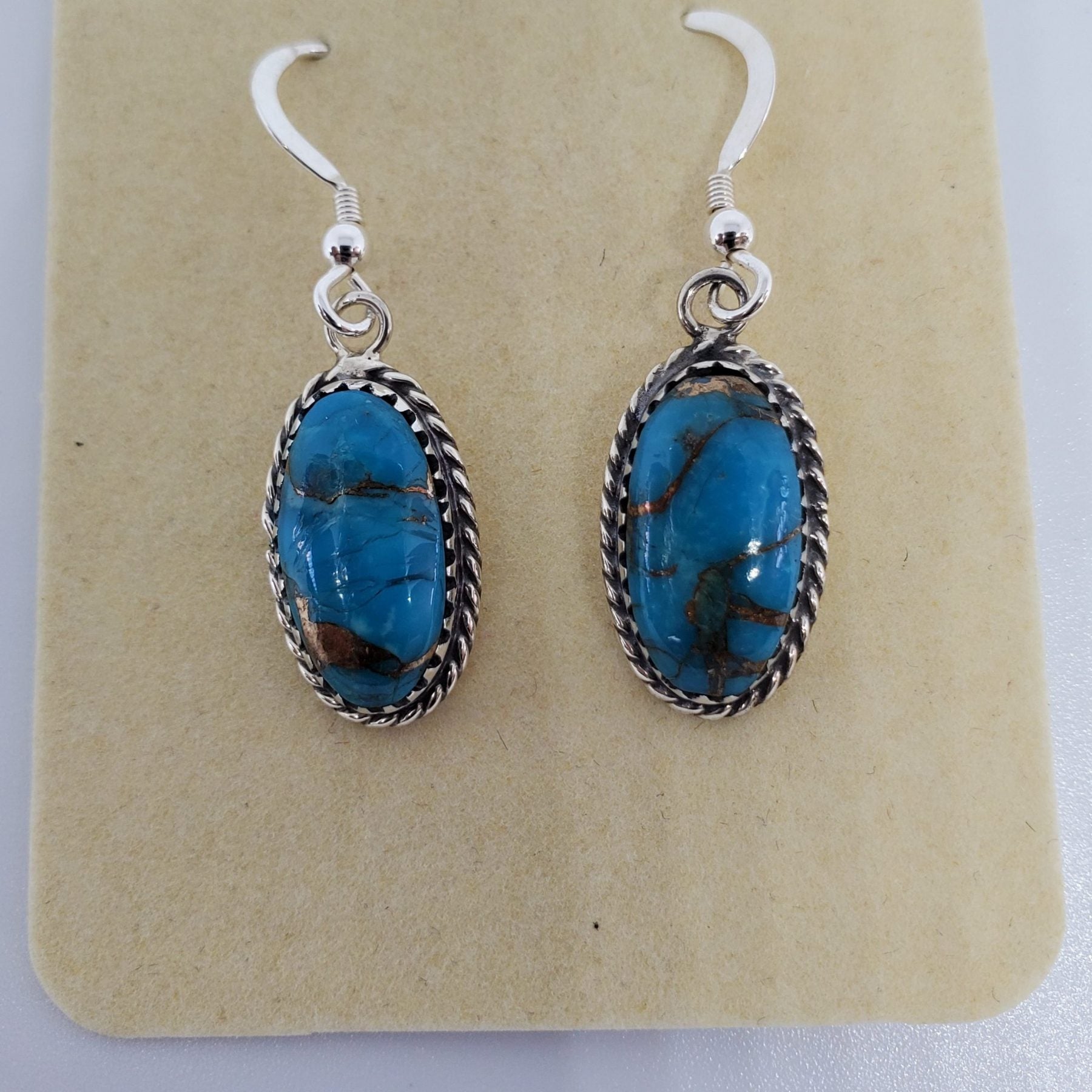Matrix Turquoise Sterling Silver Oval Earrings (.80"L)
