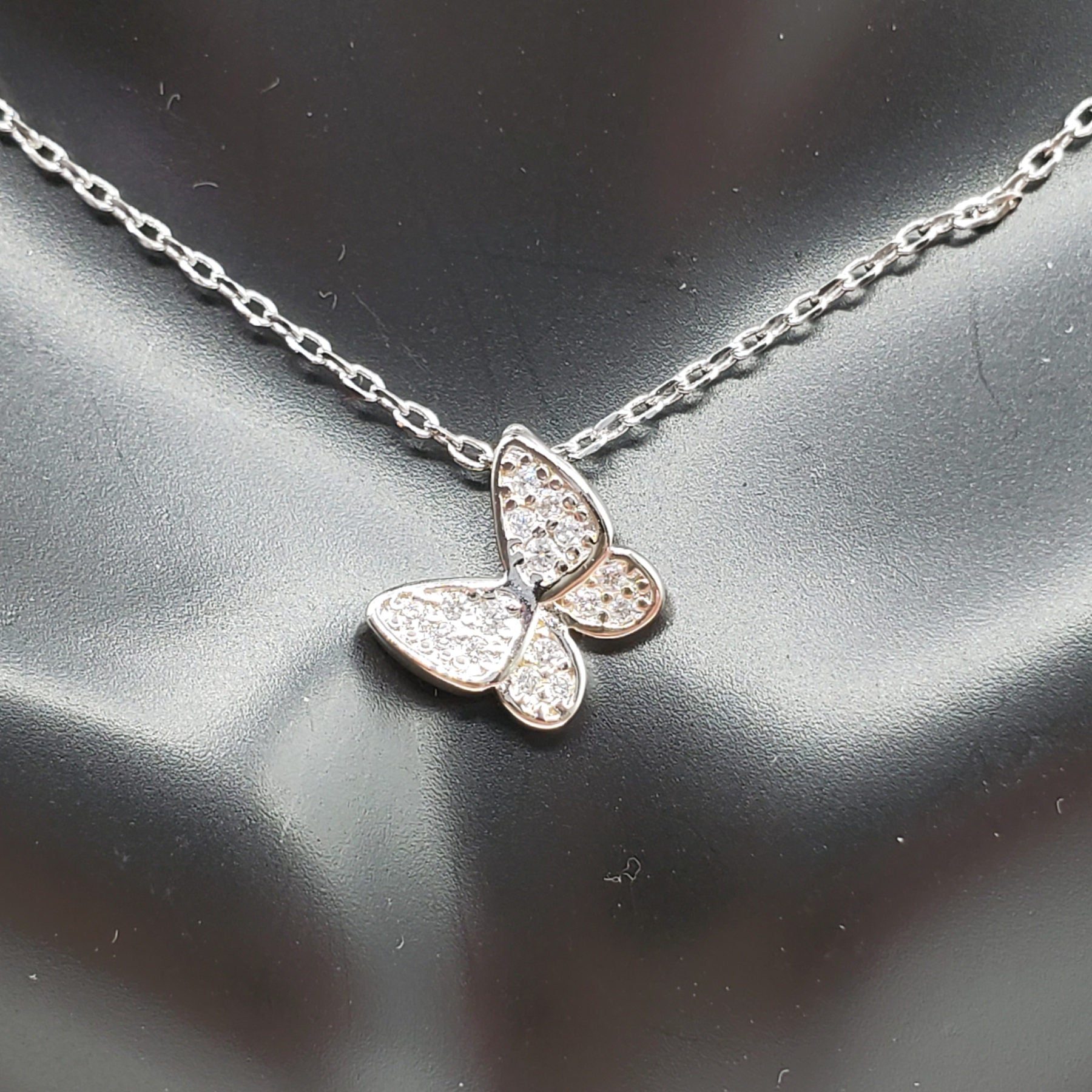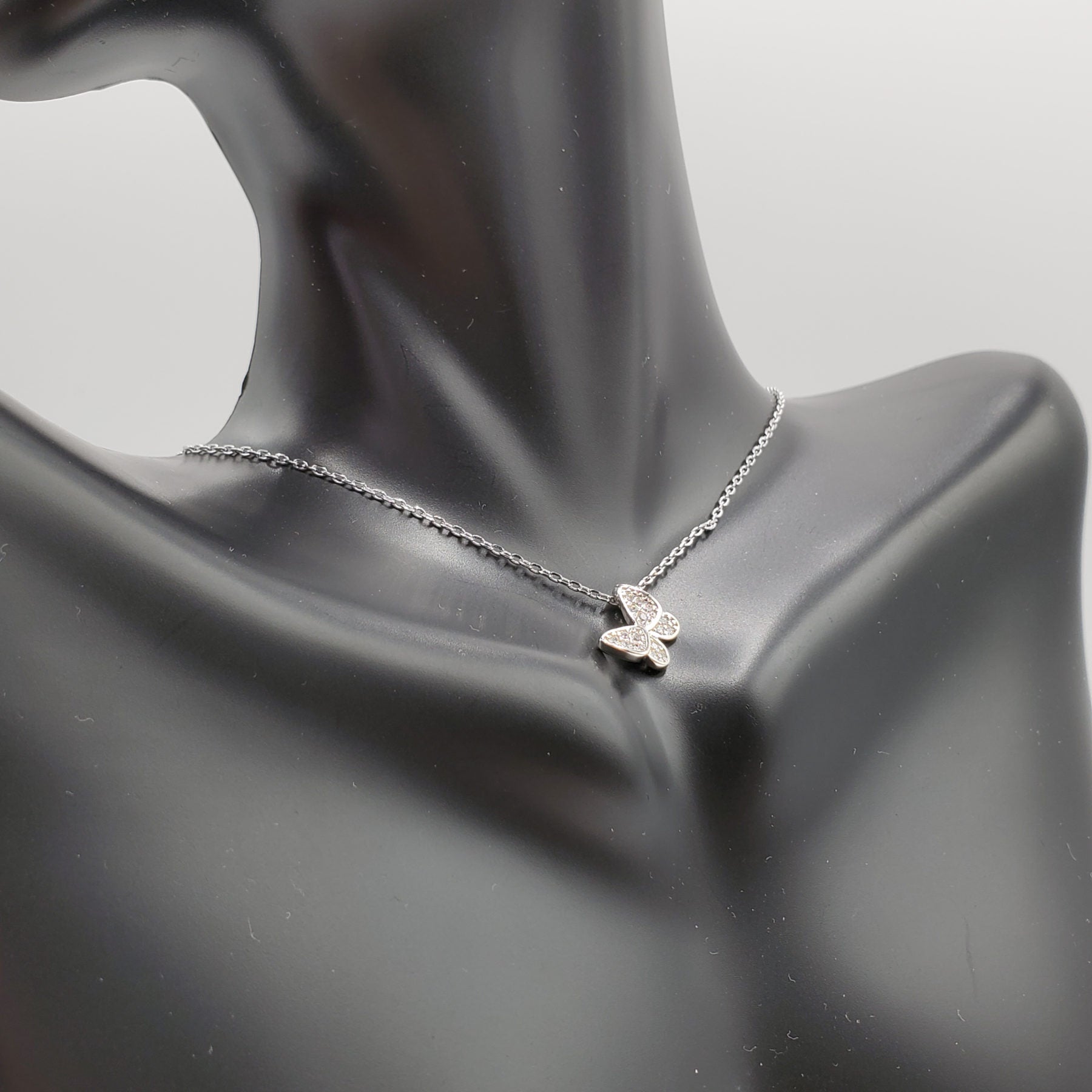 Minimalist .925 Sterling Silver 18" Crystal Butterfly Necklace. Perfect for Bridal gifts.