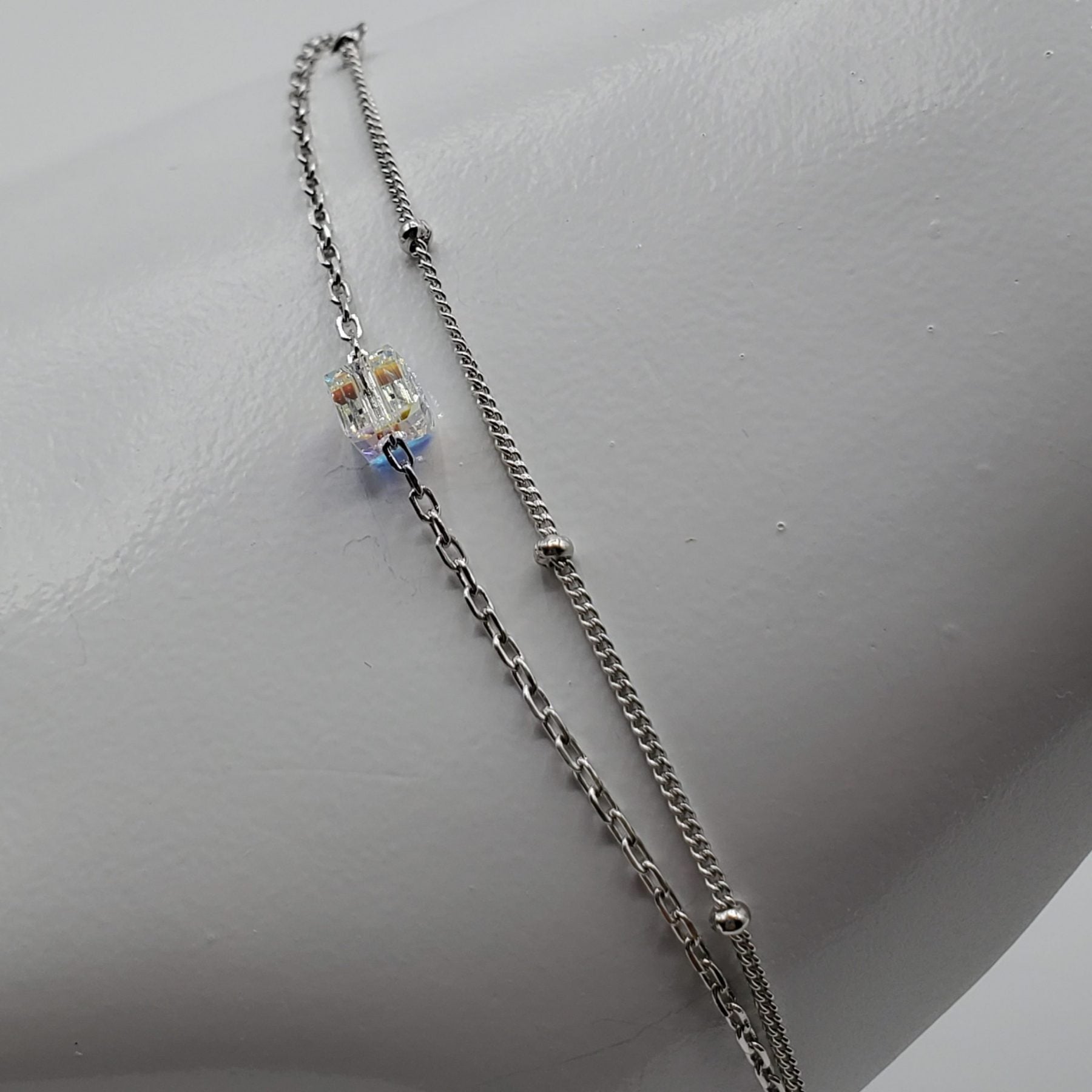 Minimalist free floating crystal cube on a double chain of .925 Sterling Silver with adjustable length.