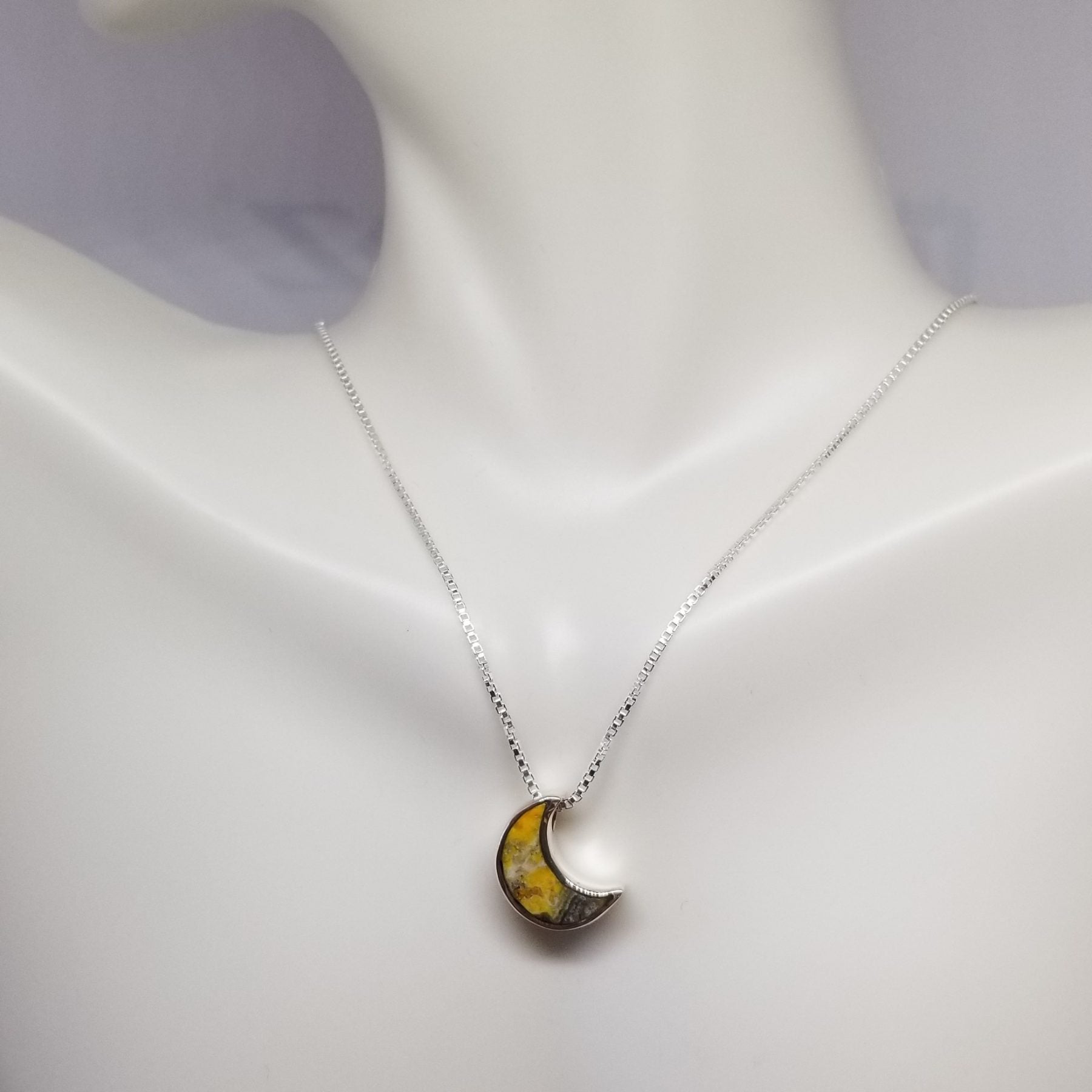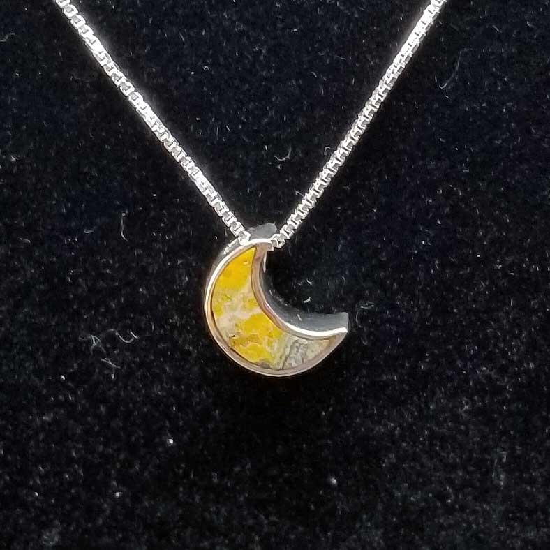 Natural Citrine set a moon shape with .925 silver 20" chain.