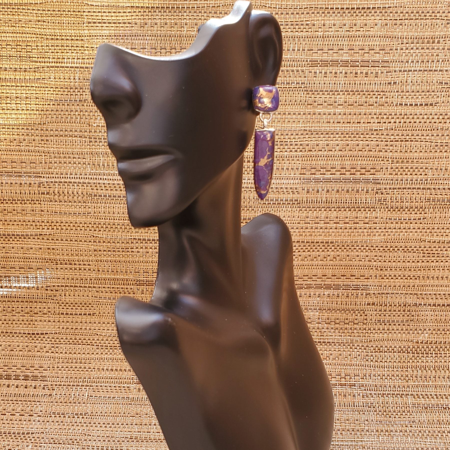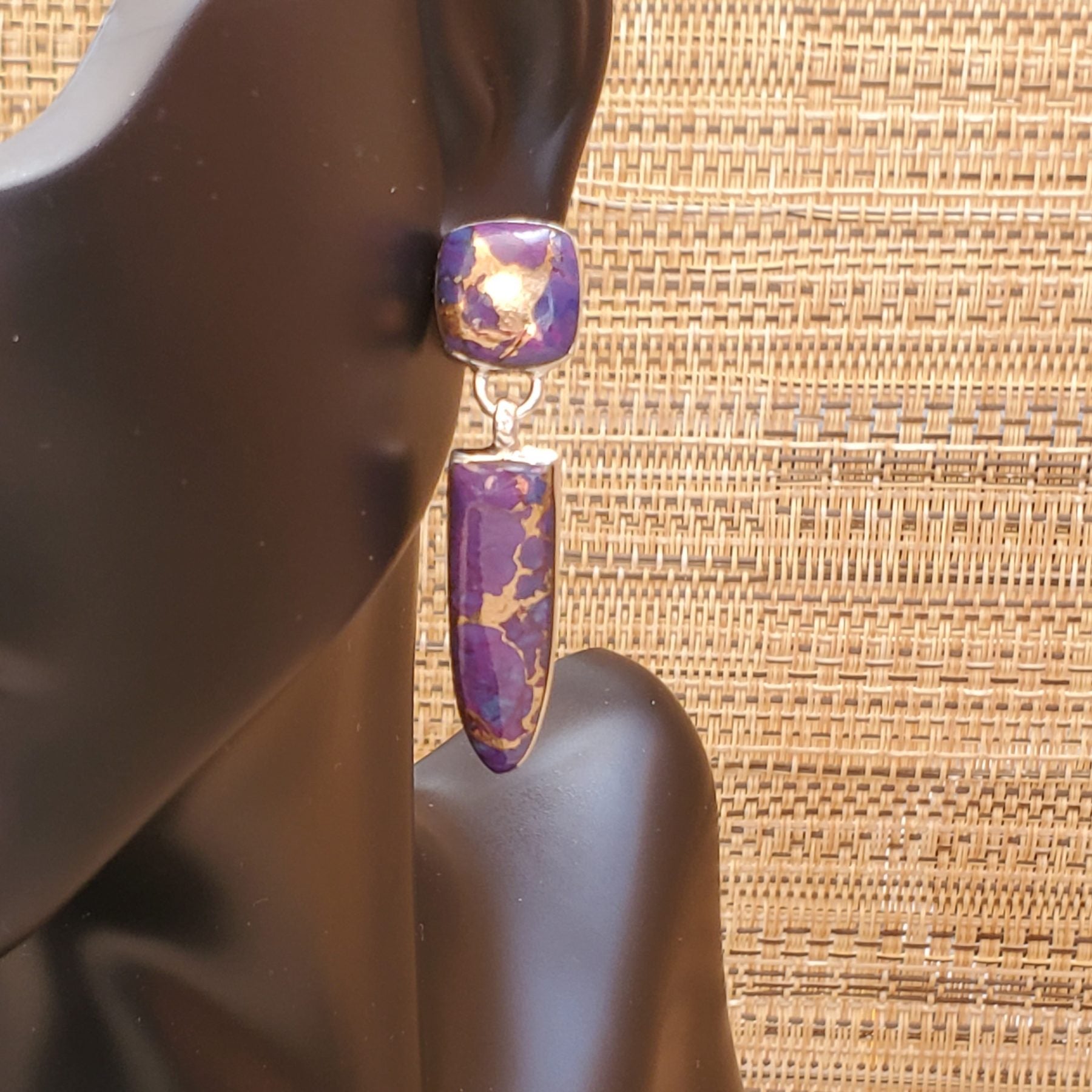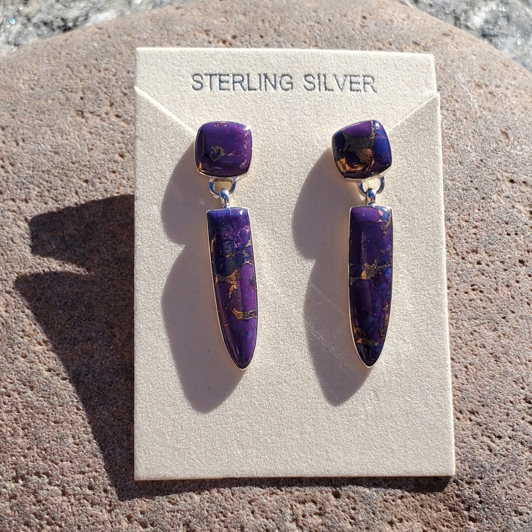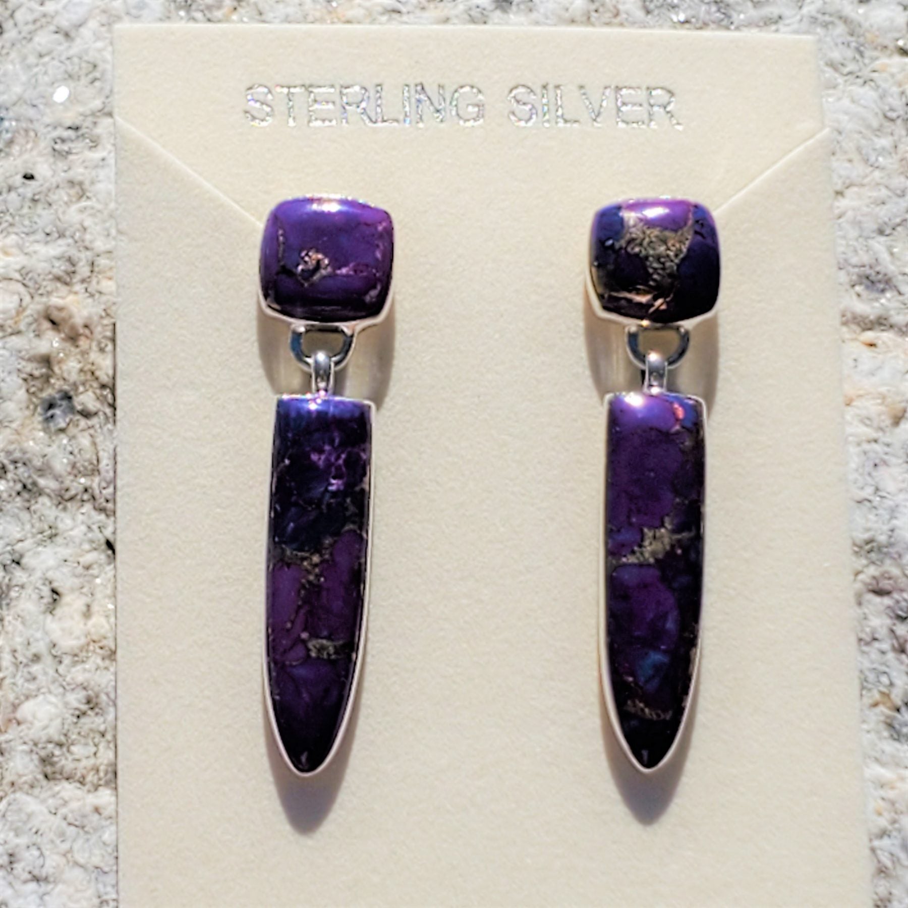 Mohave Purple Turquoise Dangle stud earrings set in .925. Sterling Silver. 36.5mm in length x 3.2 mm in width. A photo doesn't do these earrings justice they need to be seen to be appreciated for their beauty.