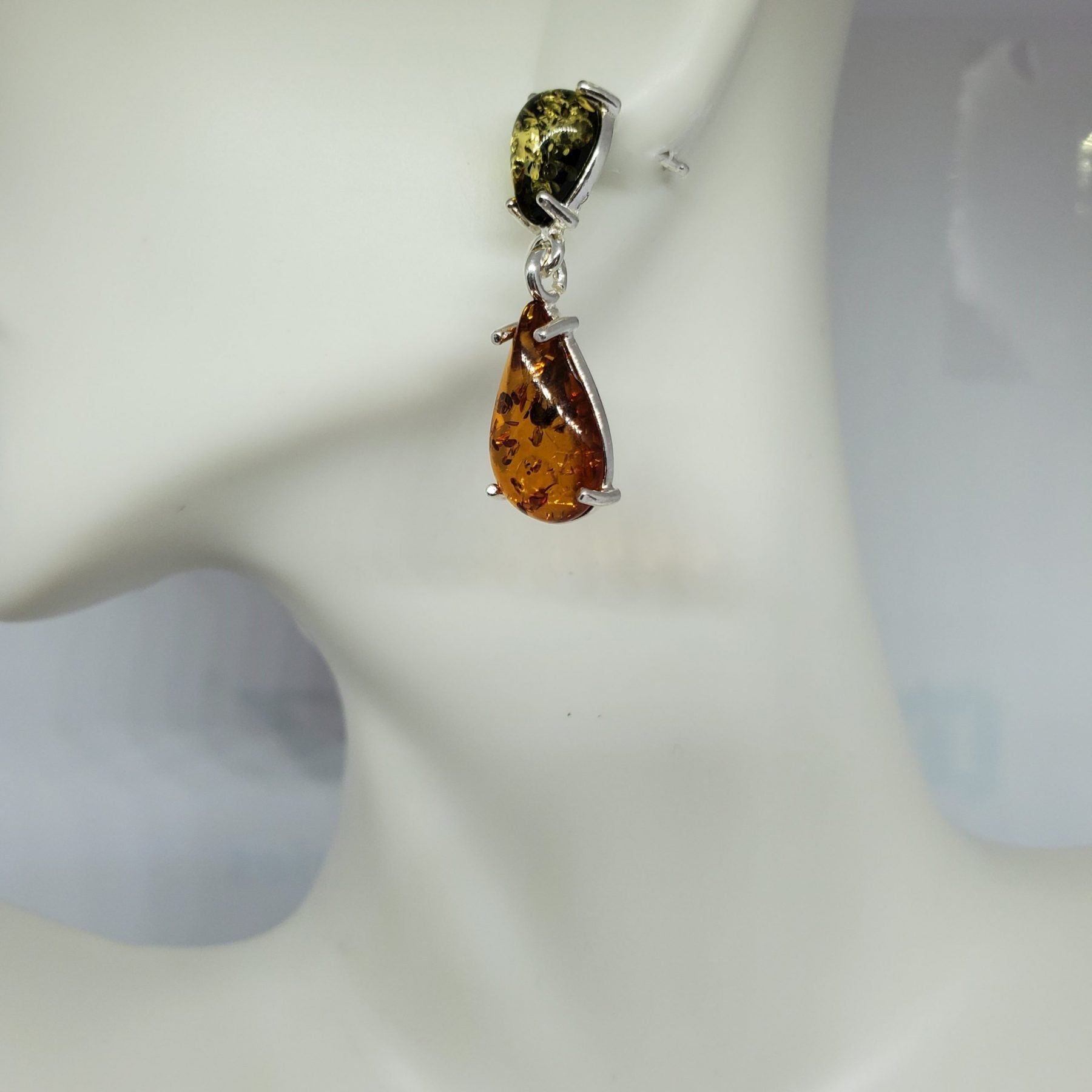 Multi Color Amber Double Drop Teardrop Earrings in Sterling Silver