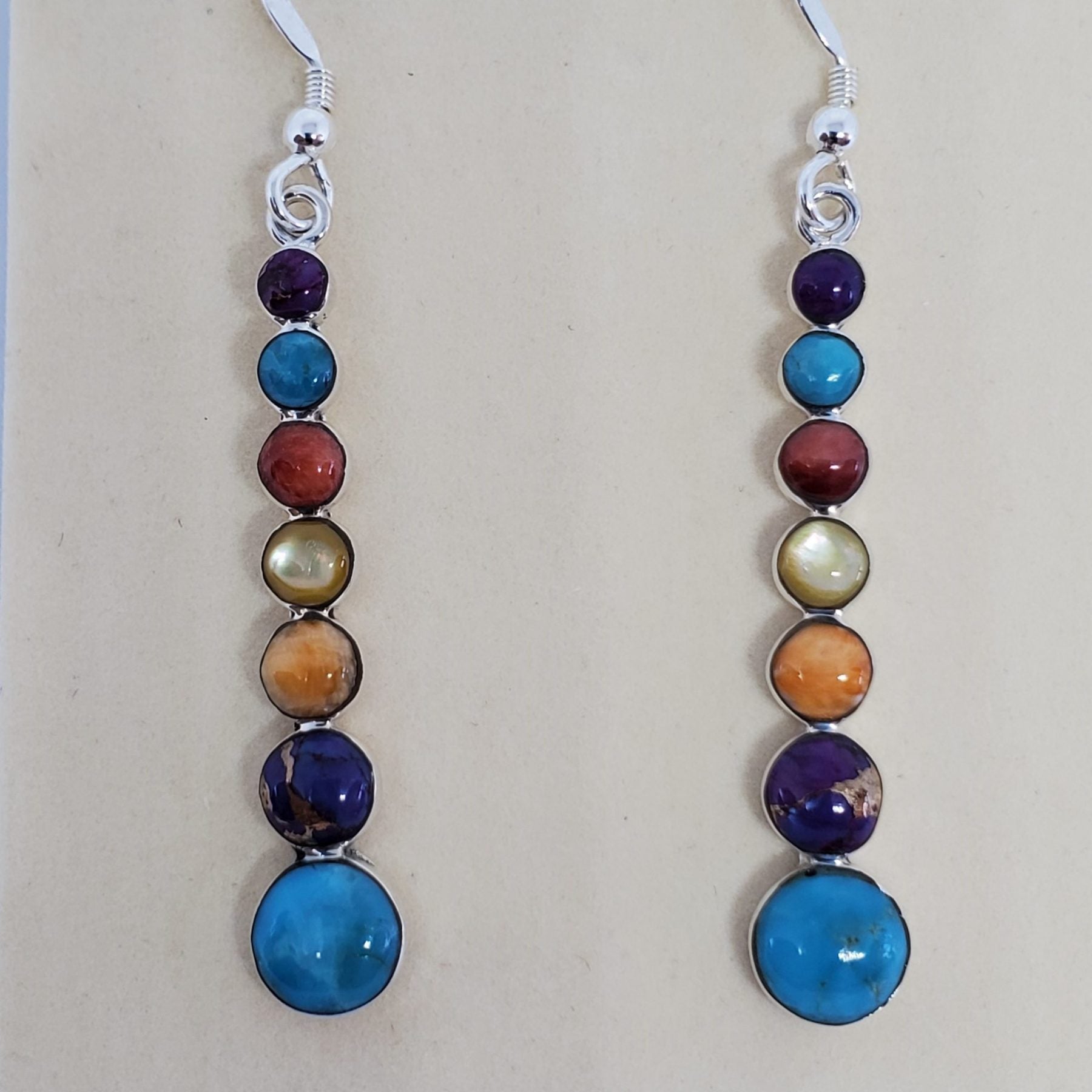 Multi Gemstone Sterling Silver Dangle Earrings (1.58" L) Some jewelry is just fun to wear and these dangle multi gemstone earrings fit the bill.