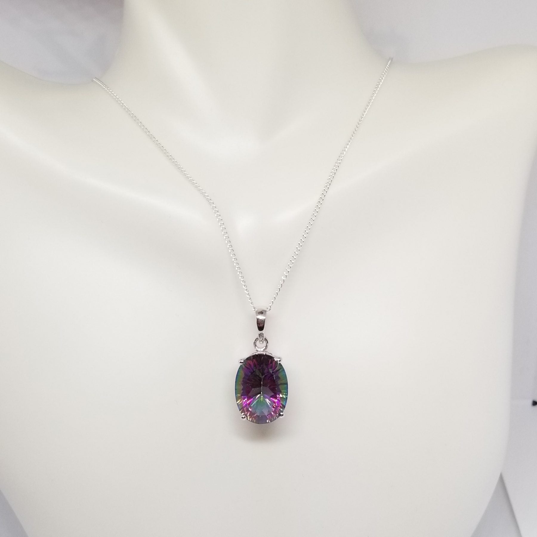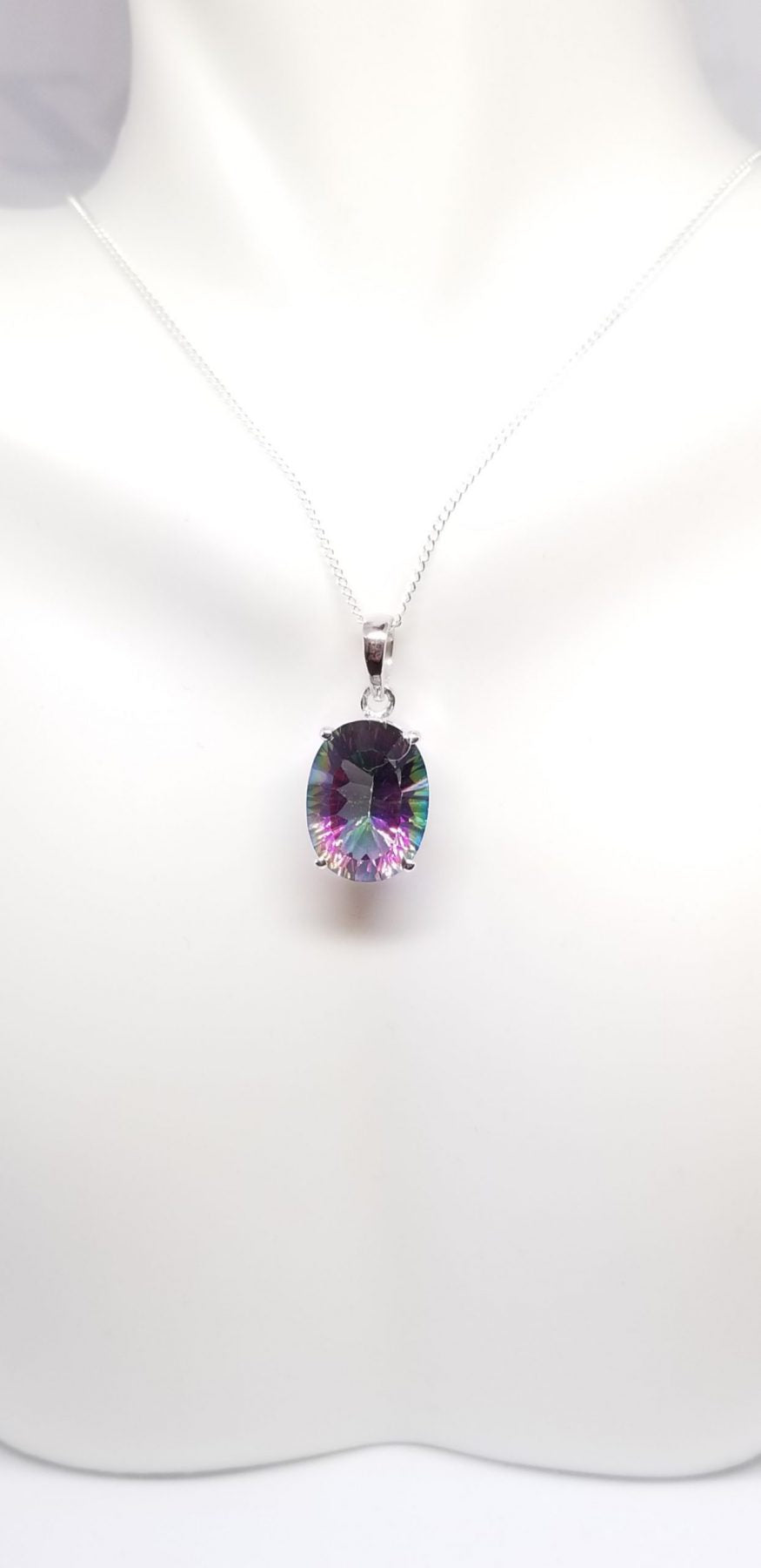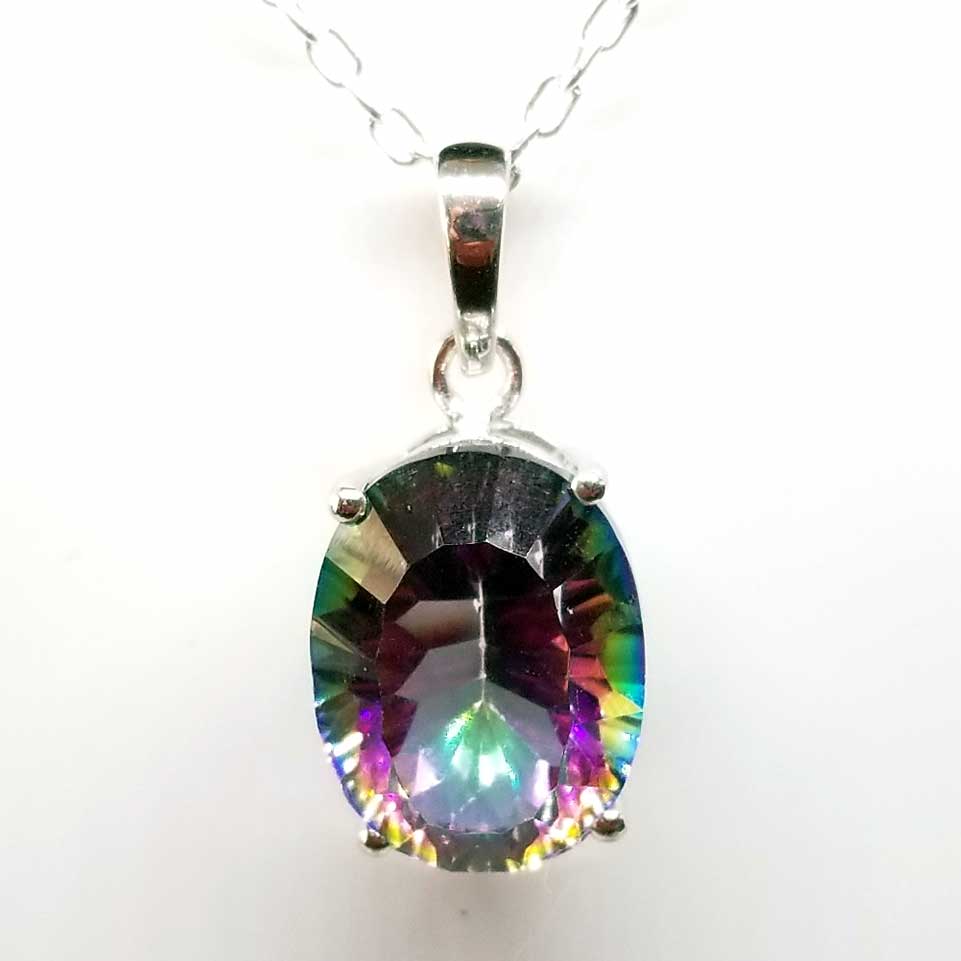 Mystic Quartz Solitaire Pendant 1.5 cm in length on a 20" .925 silver chain.