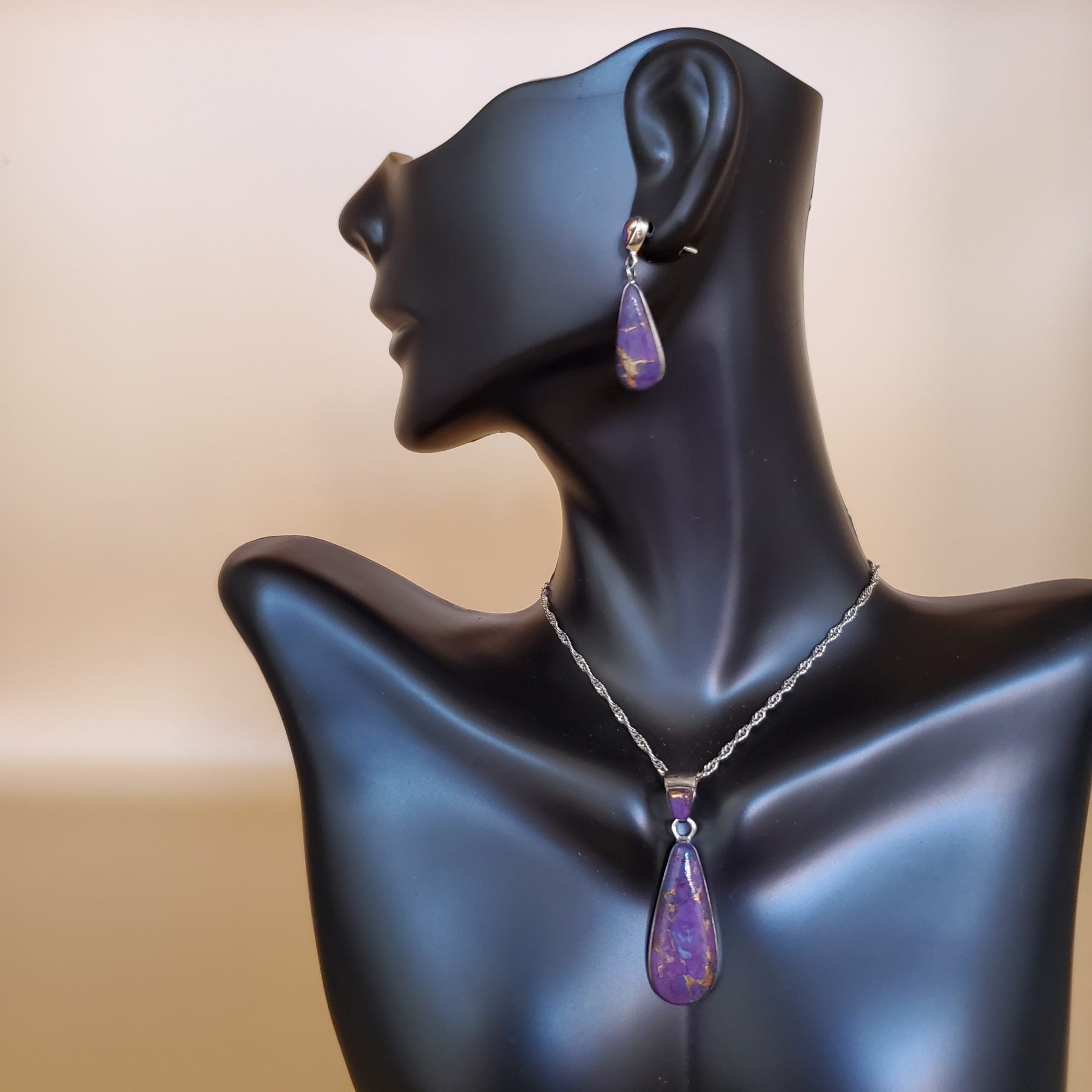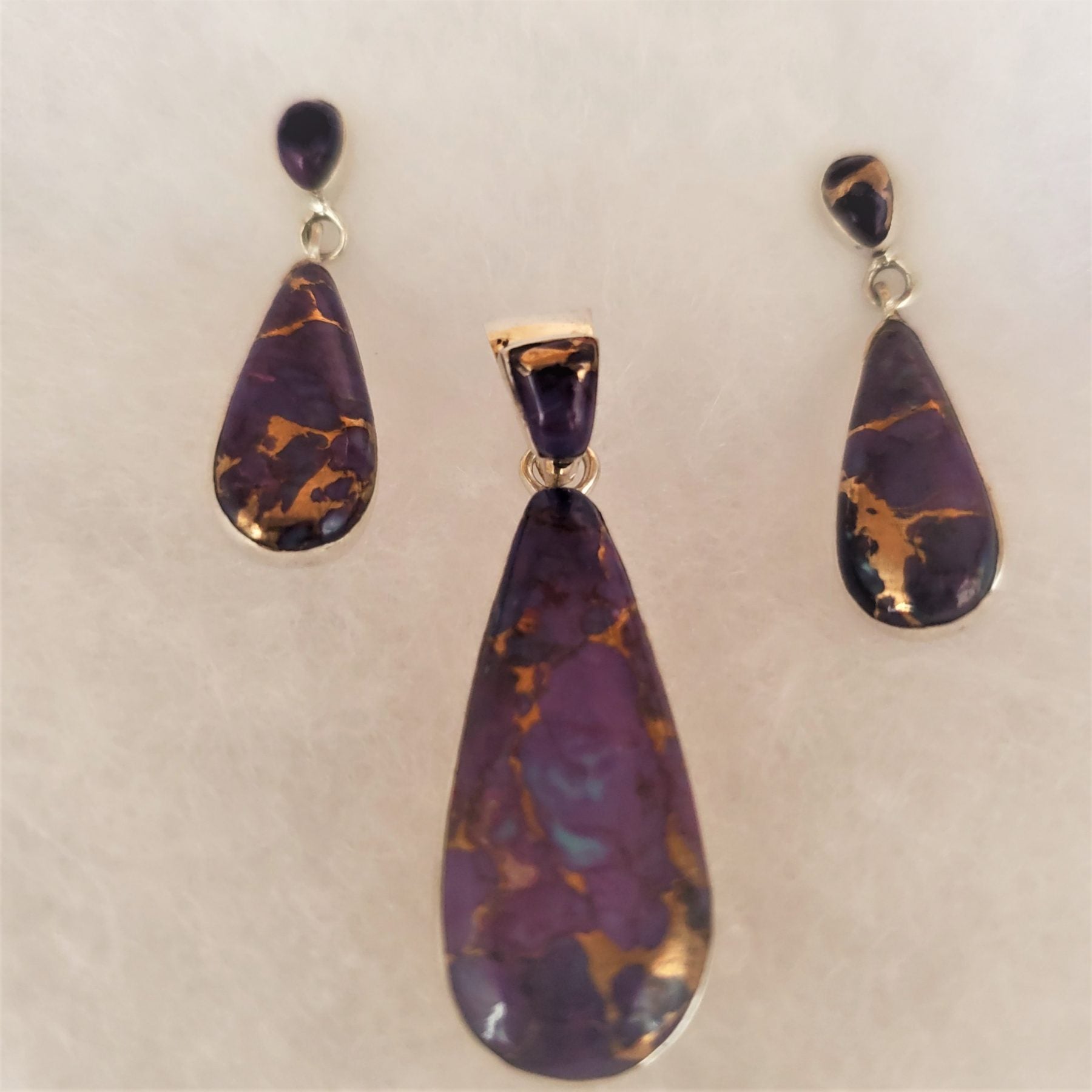 Purple Mohave Turquoise Teardrop Shaped Pendant and Earring Set