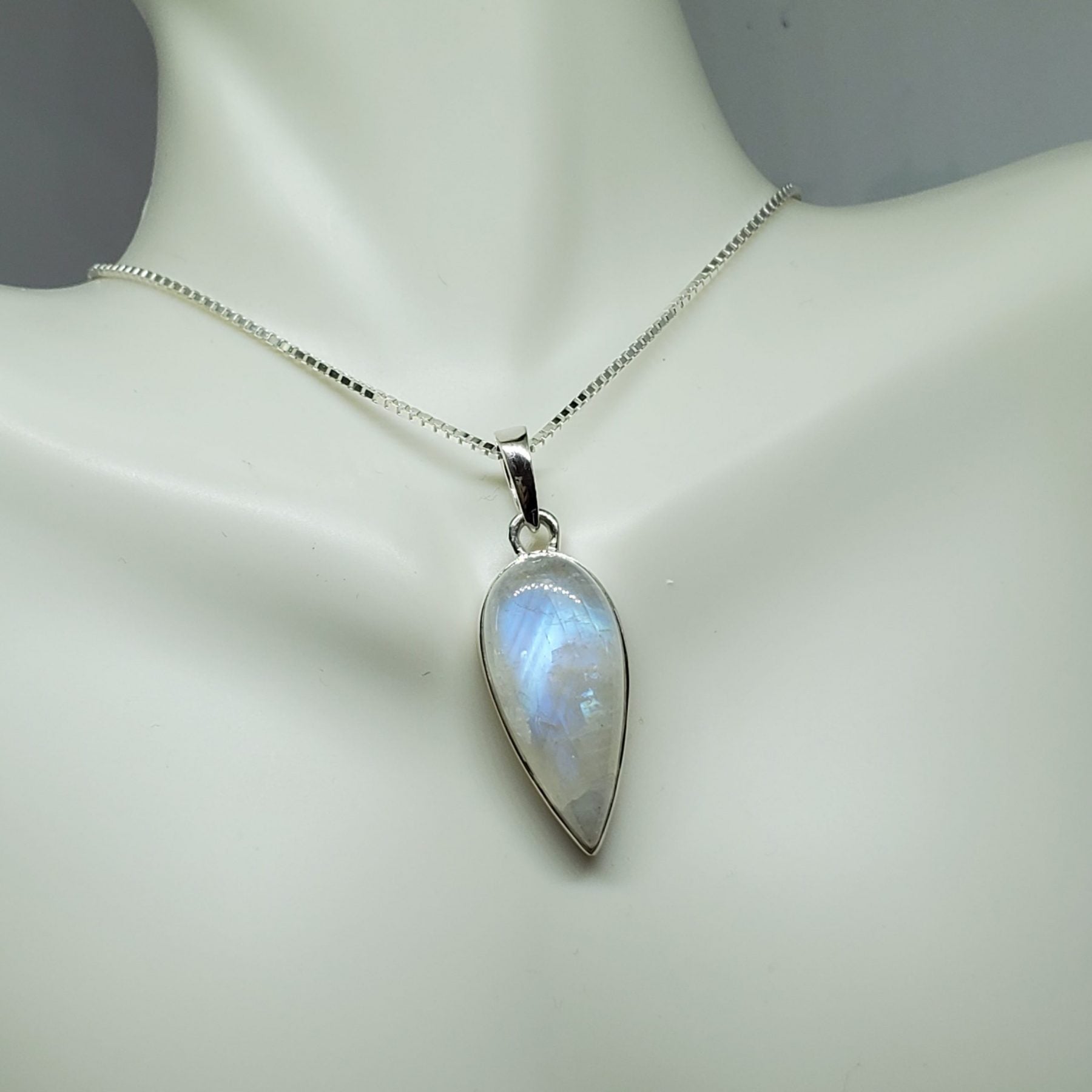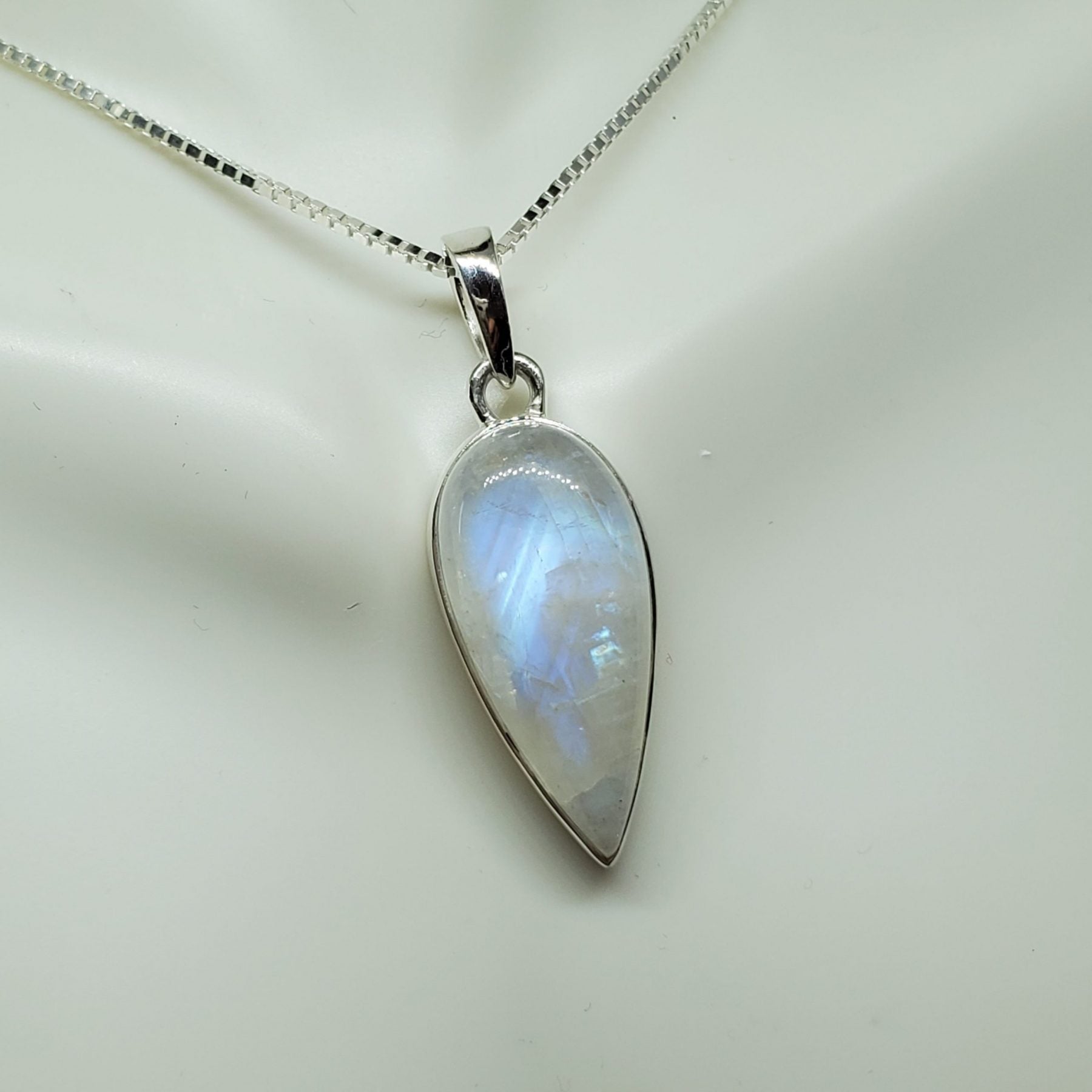 30 mm Rainbow Moonstone teardrop pendant (chain shown not sold)