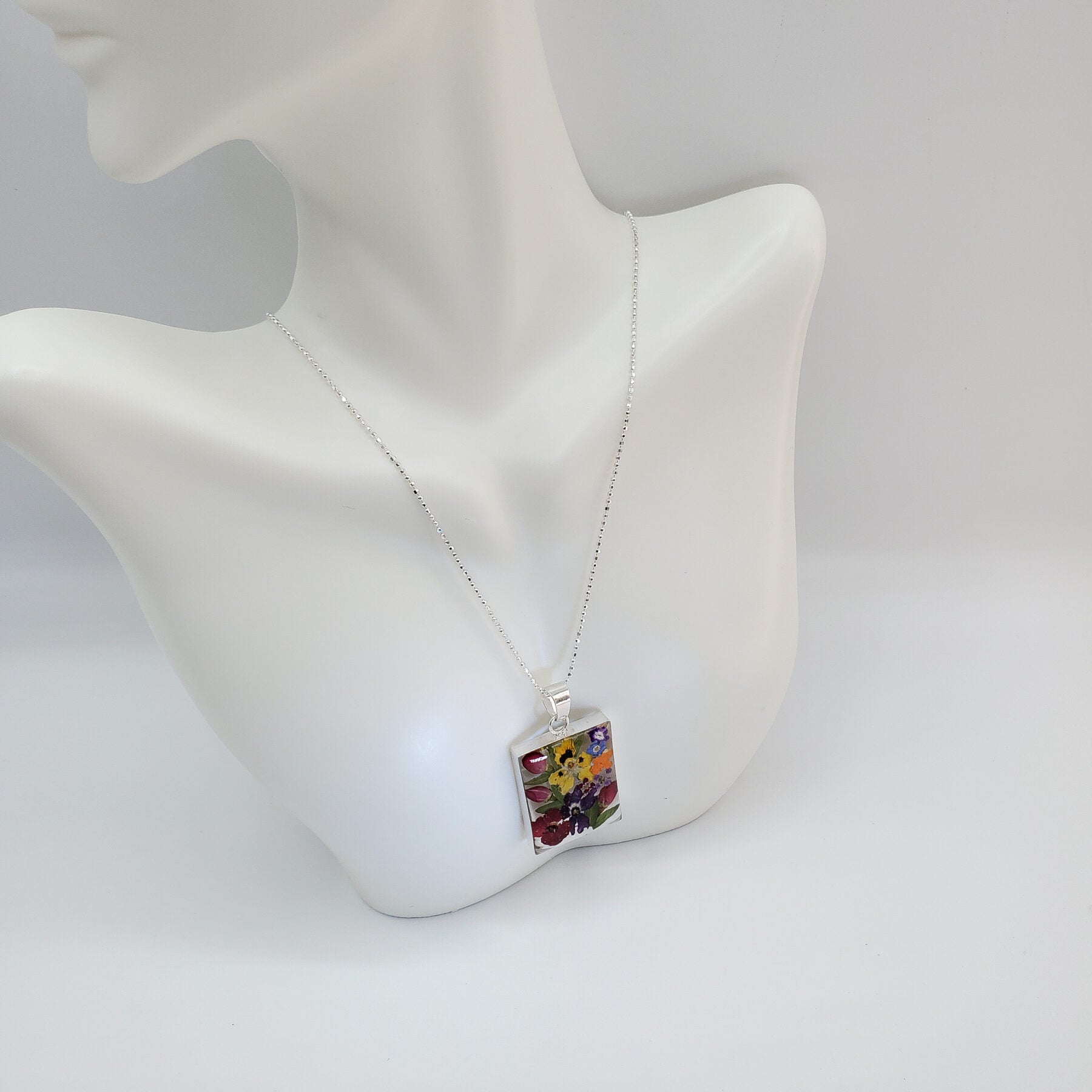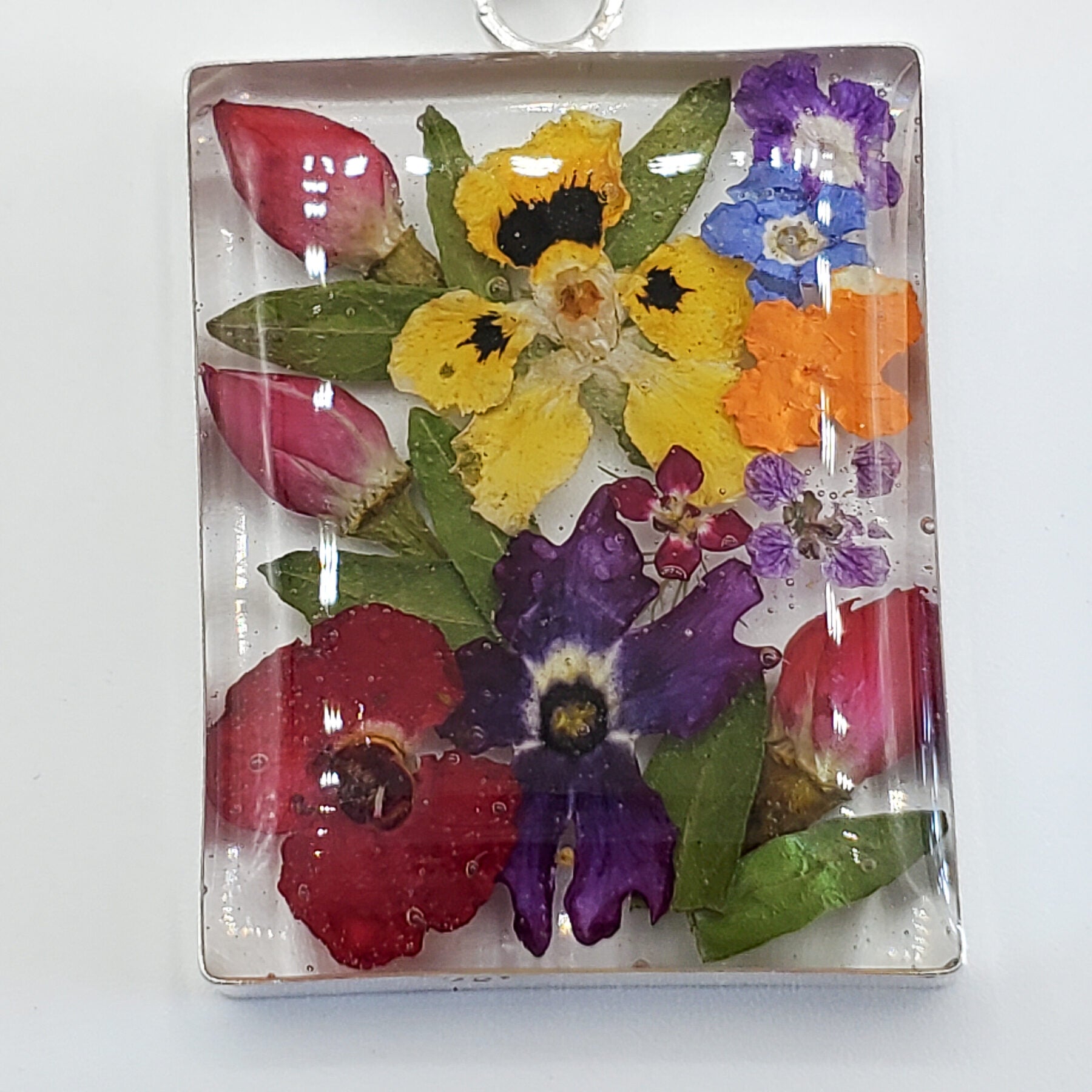 Rectangular Resin Flower Pendant with chain