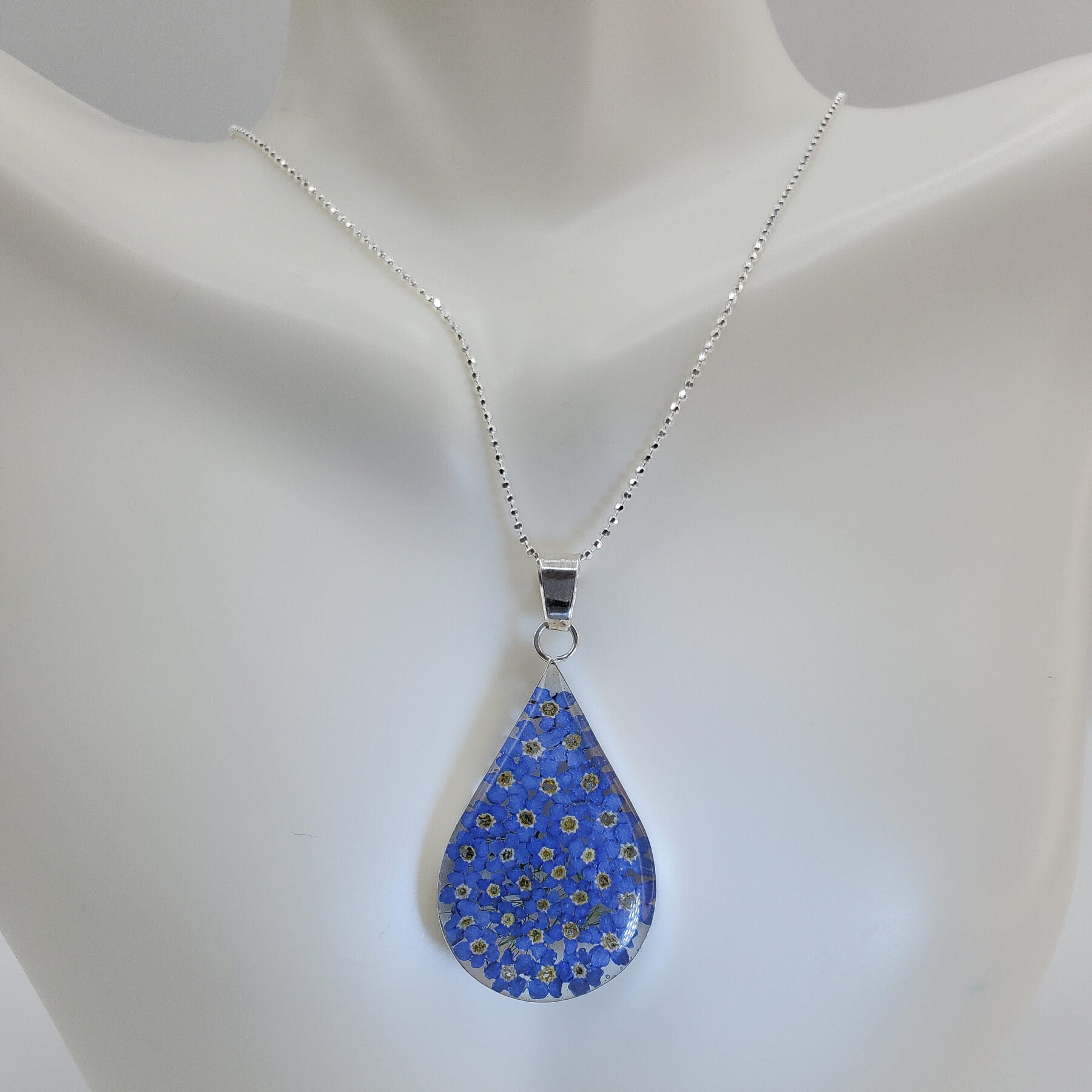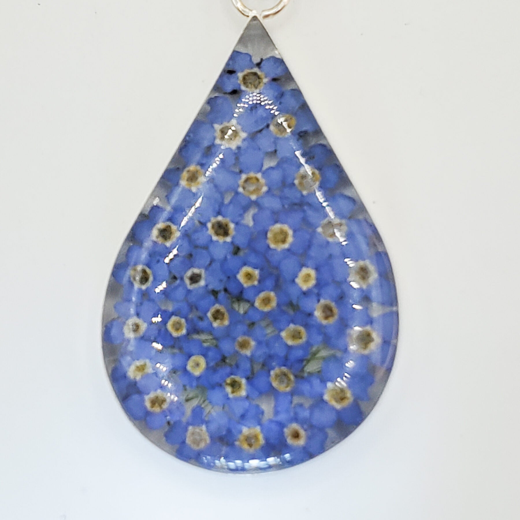 .925 Sterling Silver 20" ball chain with a 35mm in length resin pendant with delicate bluebell flowers.