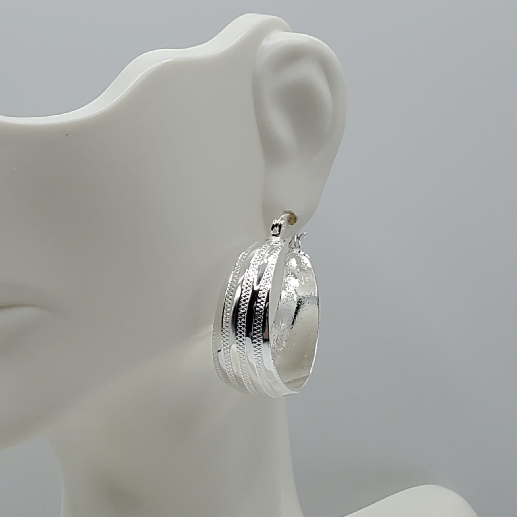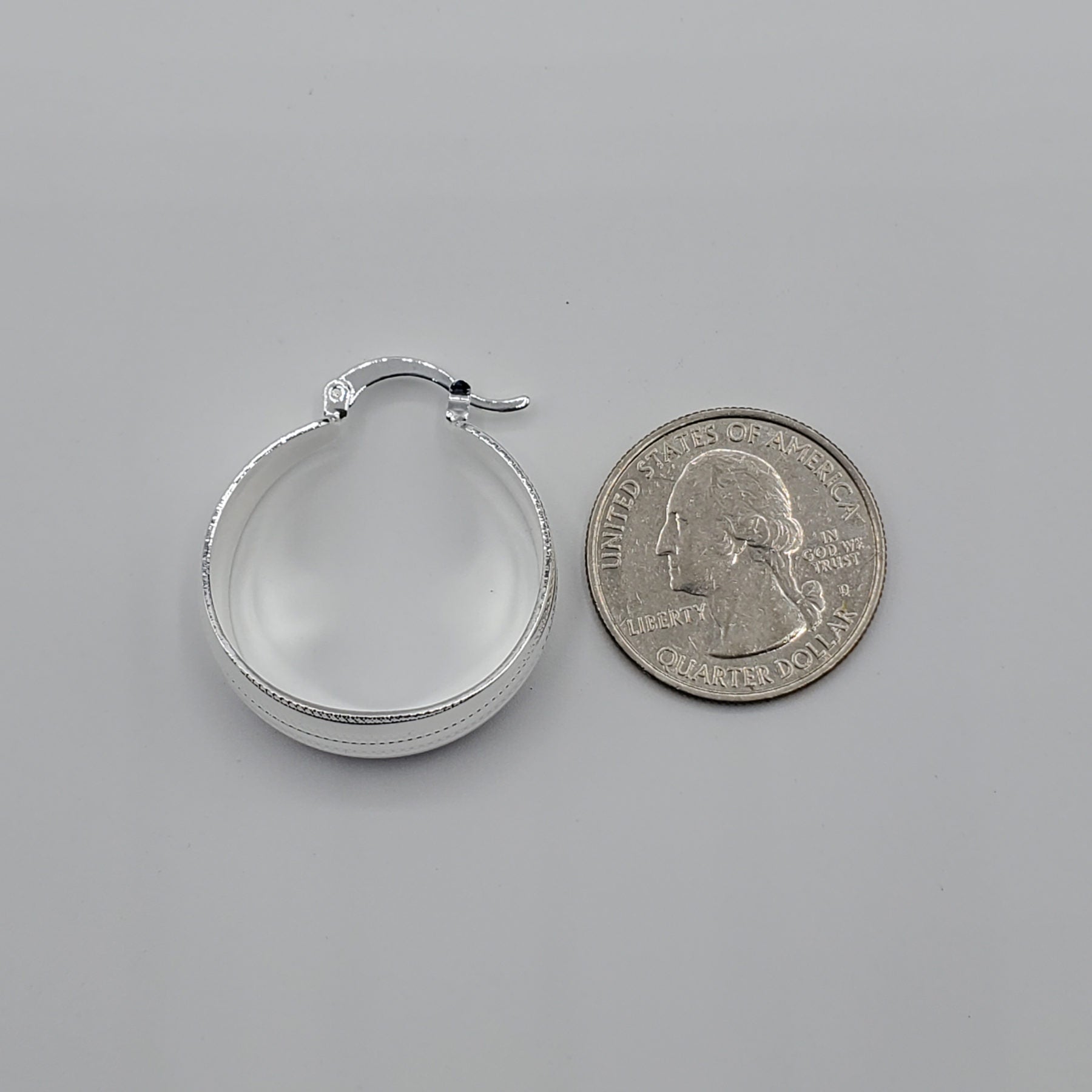 Retro Style .925 Sterling Silver 12mm Hoop Earrings. Widest part of hoop is 12mm in width.