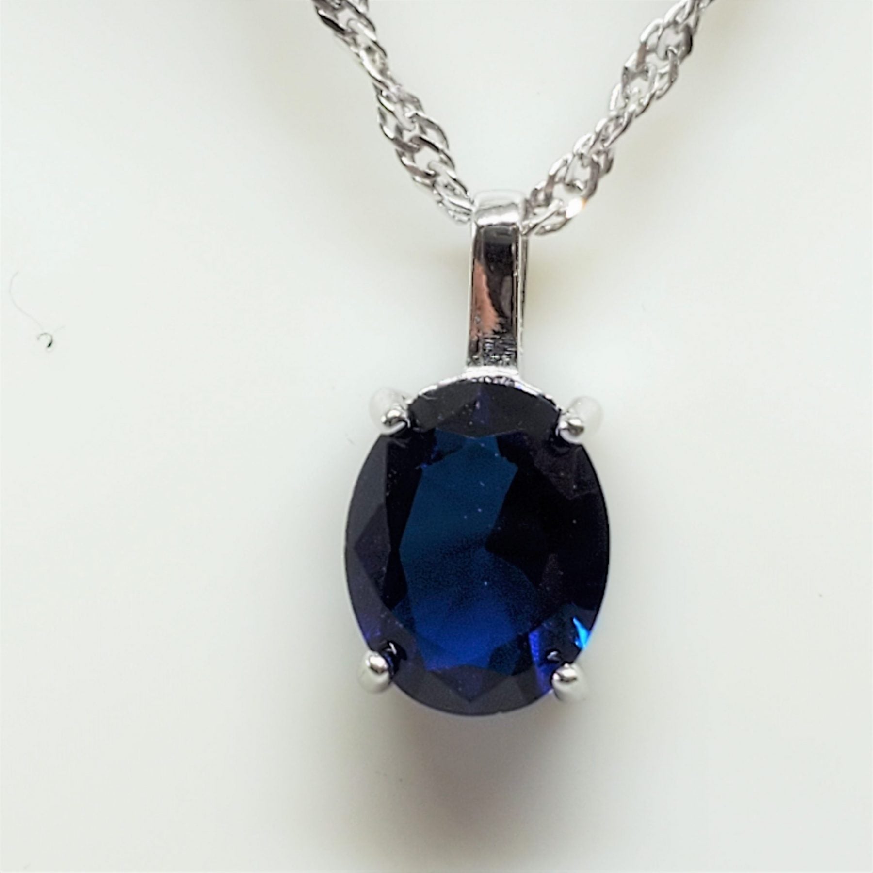 Sapphire 3 piece oval .925 Sterling Silver earring and pendant set with 22" silver box chain included. Chain shown in photo not included with sale but can be purchased separately, it is item# 334