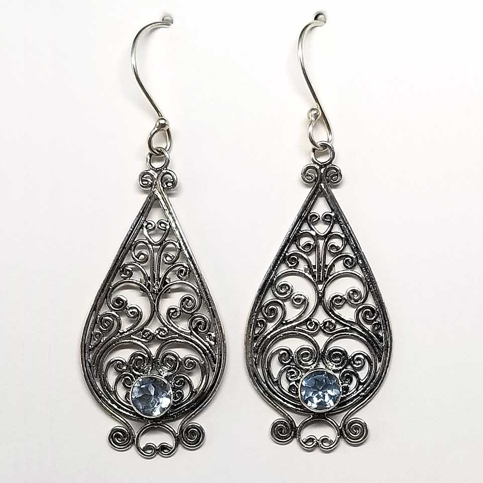 Silver Filigree and Aquamarine Dangle