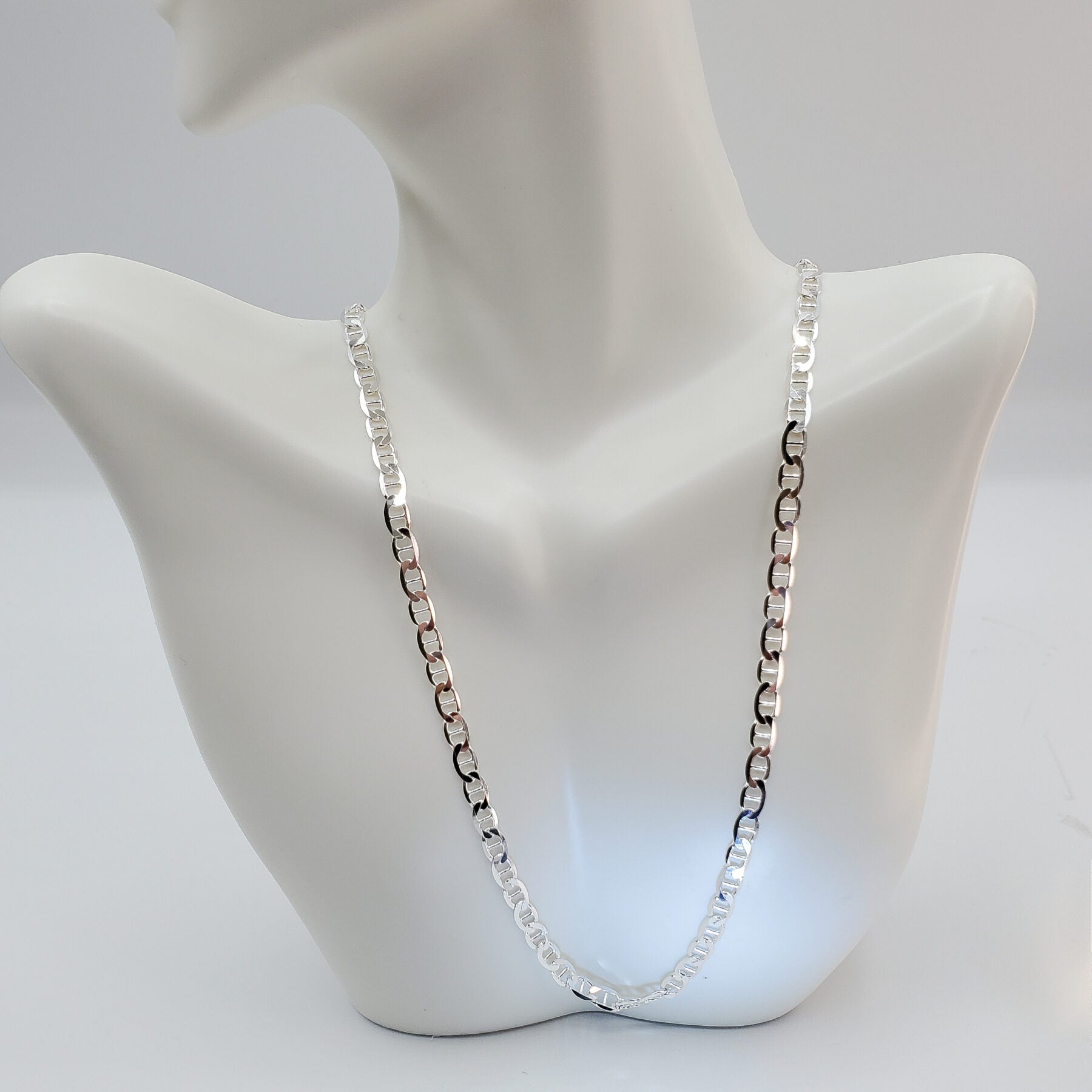 .925 solid sterling silver Figueroa style 20" chain link necklace