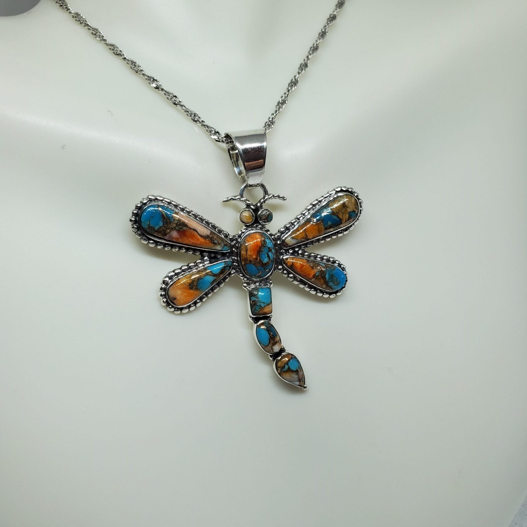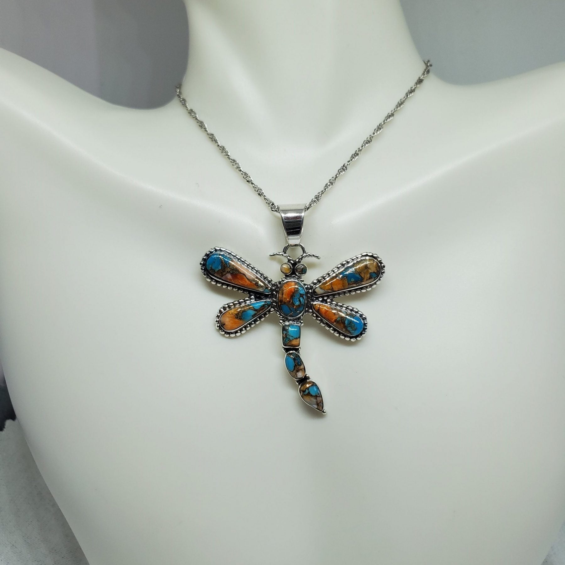 Spiny Turquoise Dragonfly Pendant 1.70" L . Chain shown in Photo not sold with Pendant.
