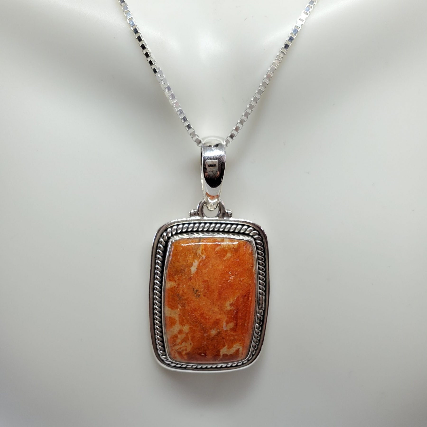 32 mm square Sponge Coral pendant with matching square 15 mm dangle earrings. Chain shown not sold with set is sold with a 22" silver box chain. Chain shown is available as item #334 in this store.