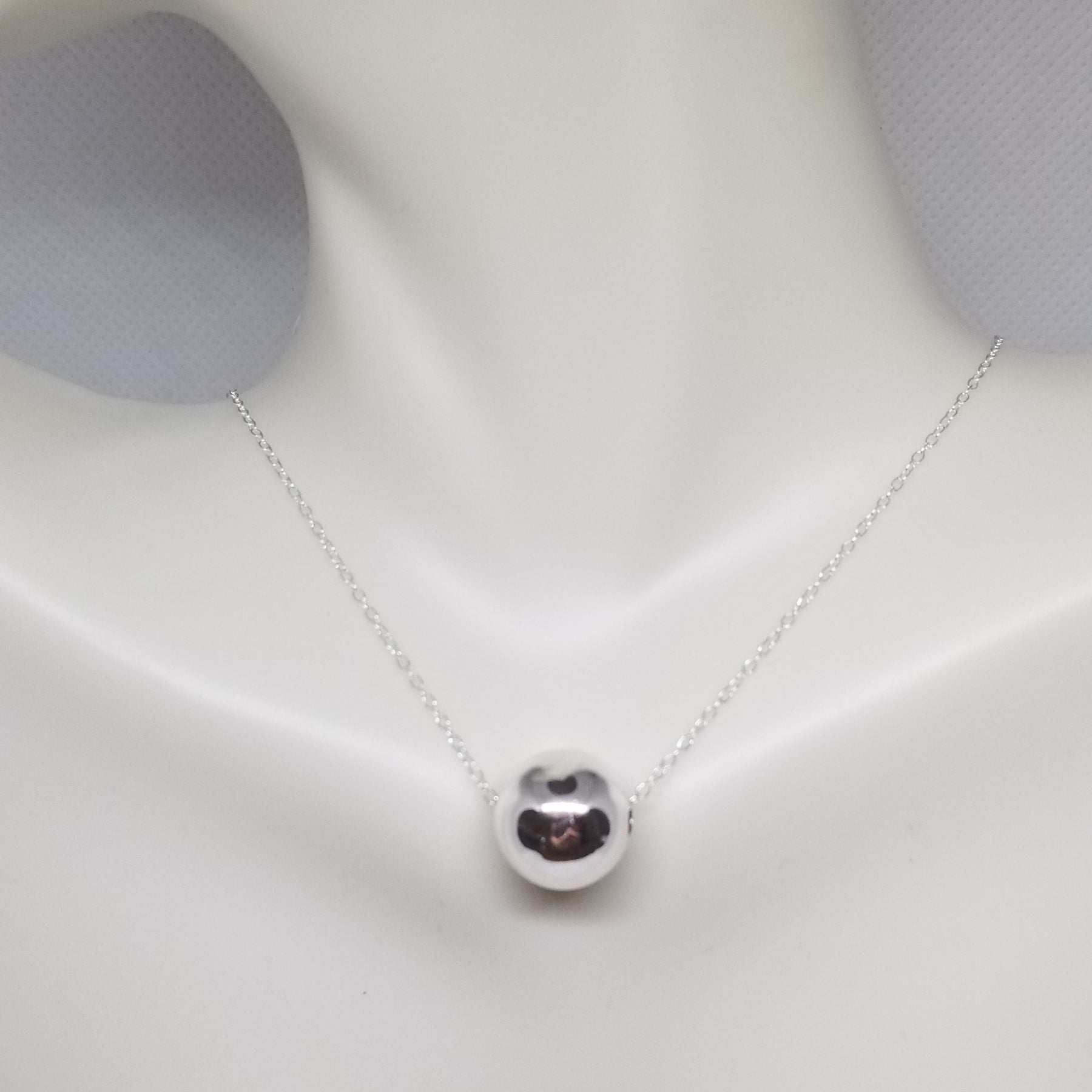 A subtle touch of shine to any outfit with 10mm sterling silver pearl floating on an 18" sterling silver delicate chain.