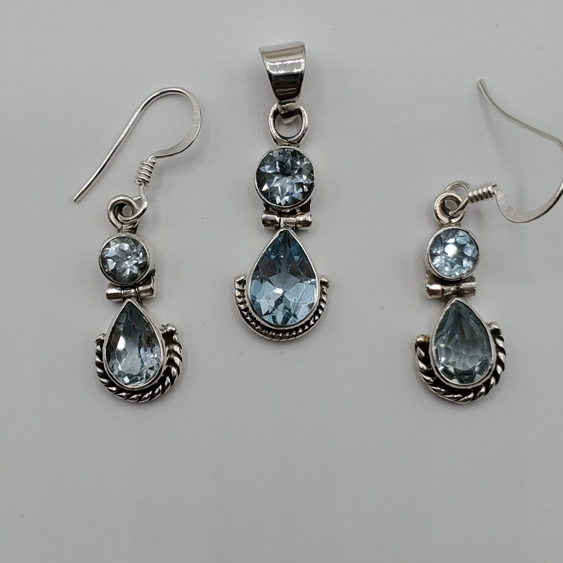 Sterling Silver Blue Topaz pendant and earrings gift set