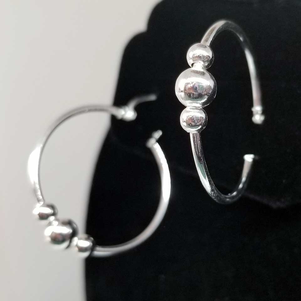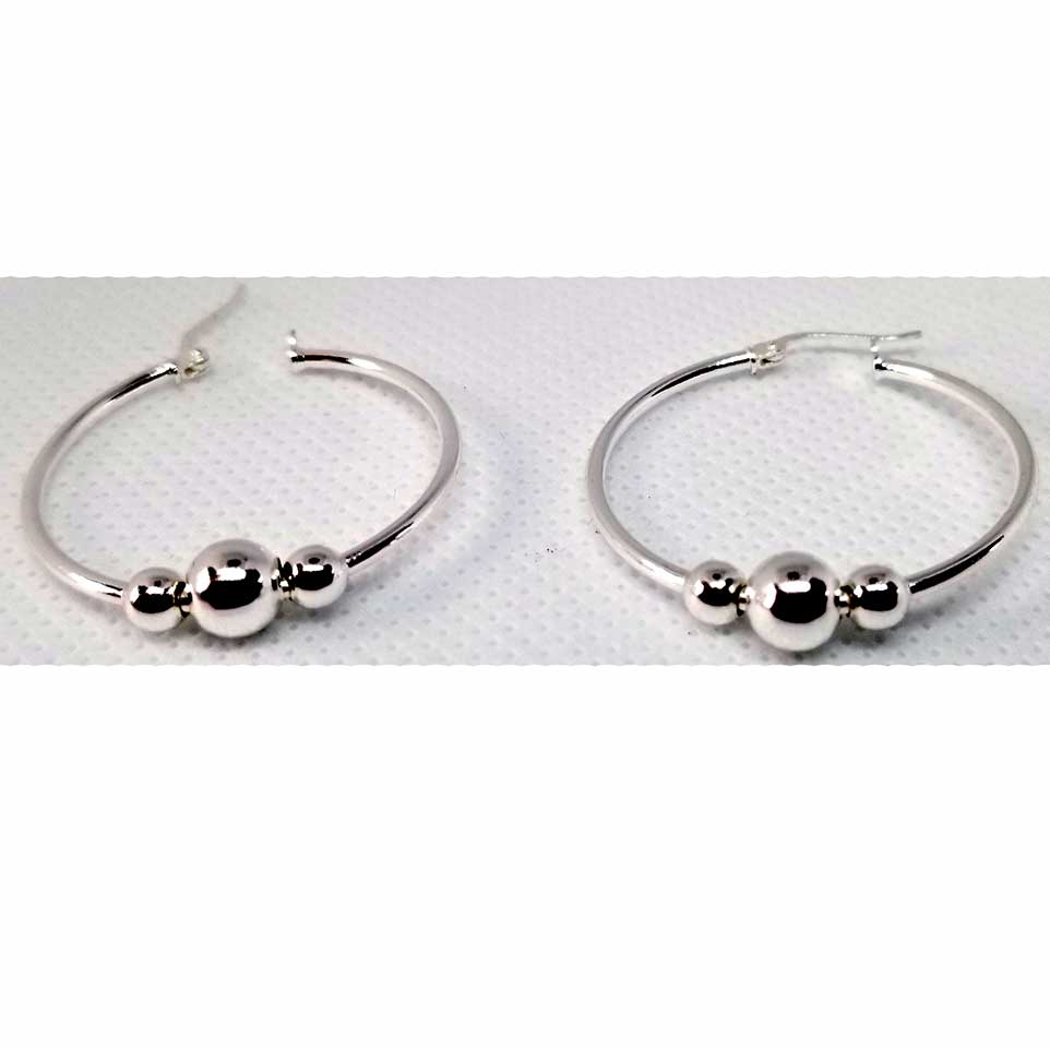 28.4 mm in diameter .925 hoop earring with 3 graduated silver beads in the center.