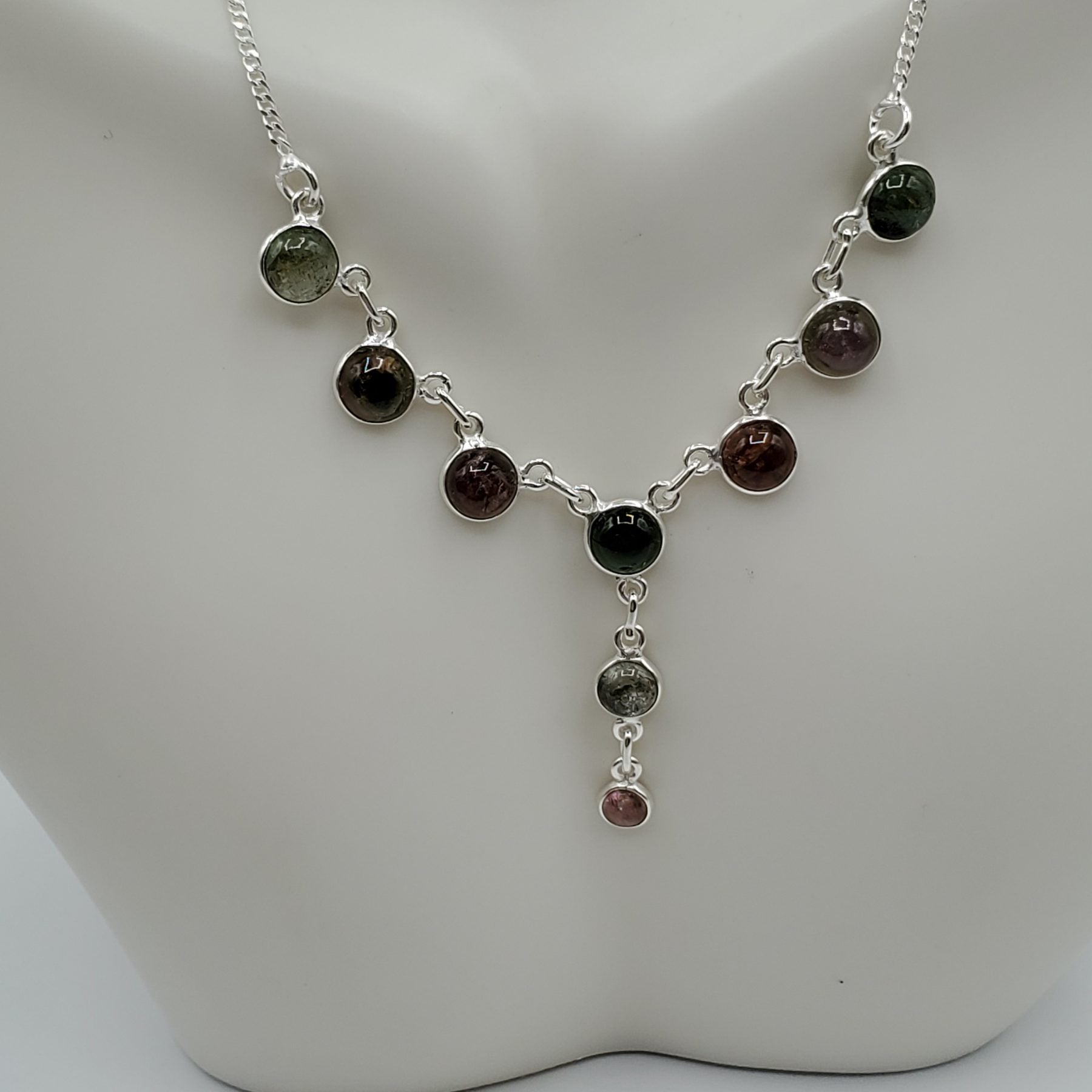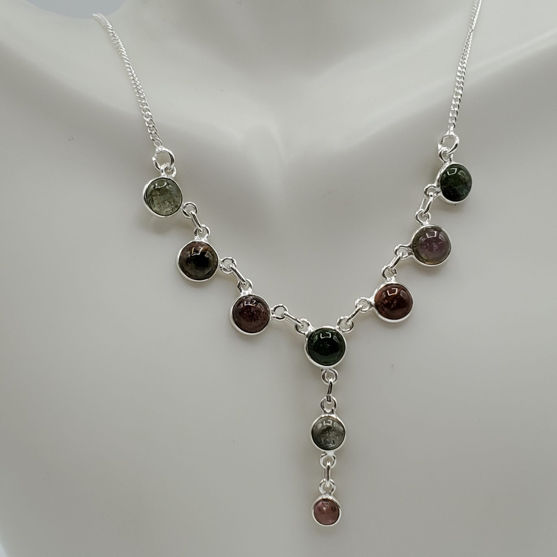 Sterling Silver Tourmaline Necklace. 18.1" L This product is a must see the colors of the cabochons are beautiful.