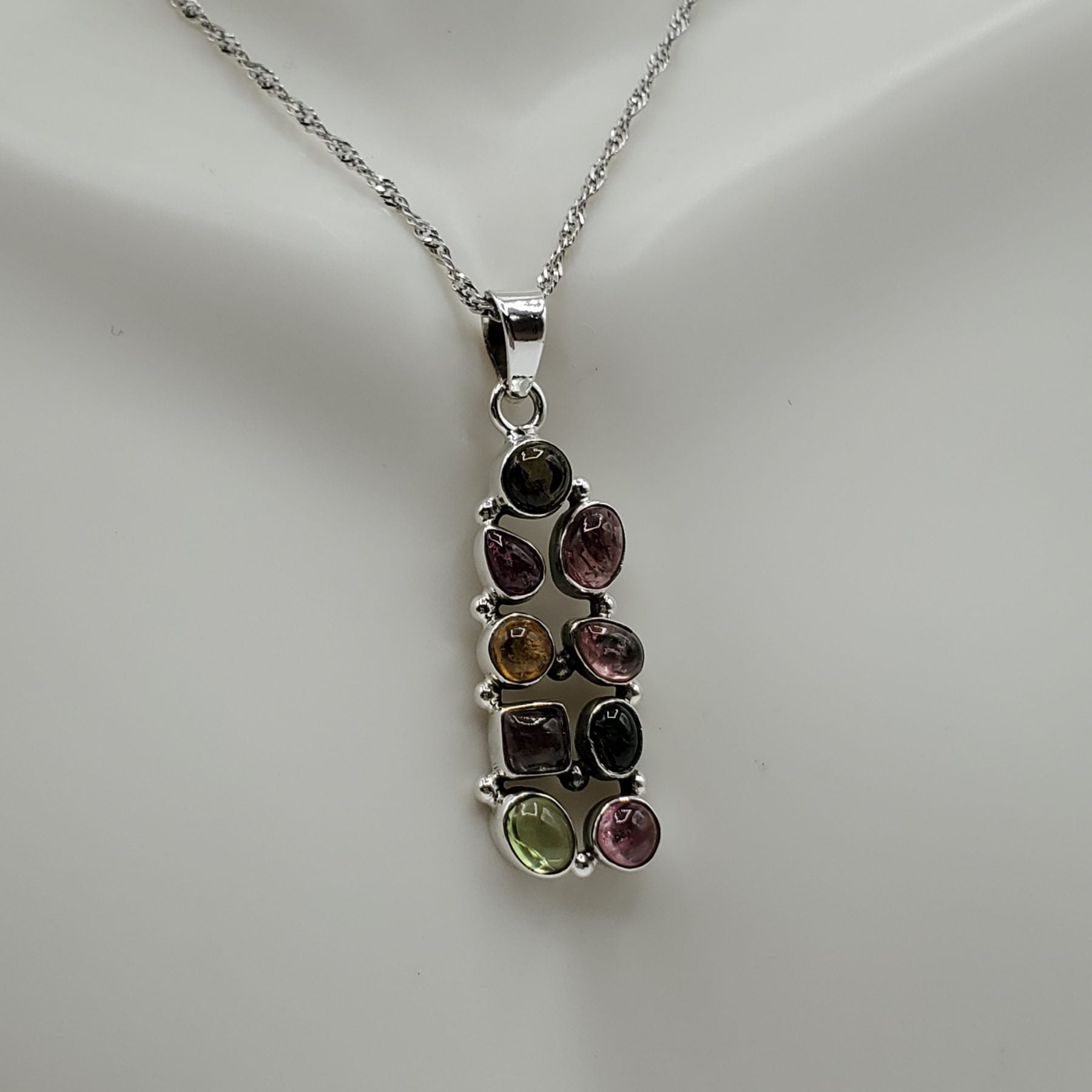 One of a kind Sterling Silver Tourmaline Pendant 1.7" L
