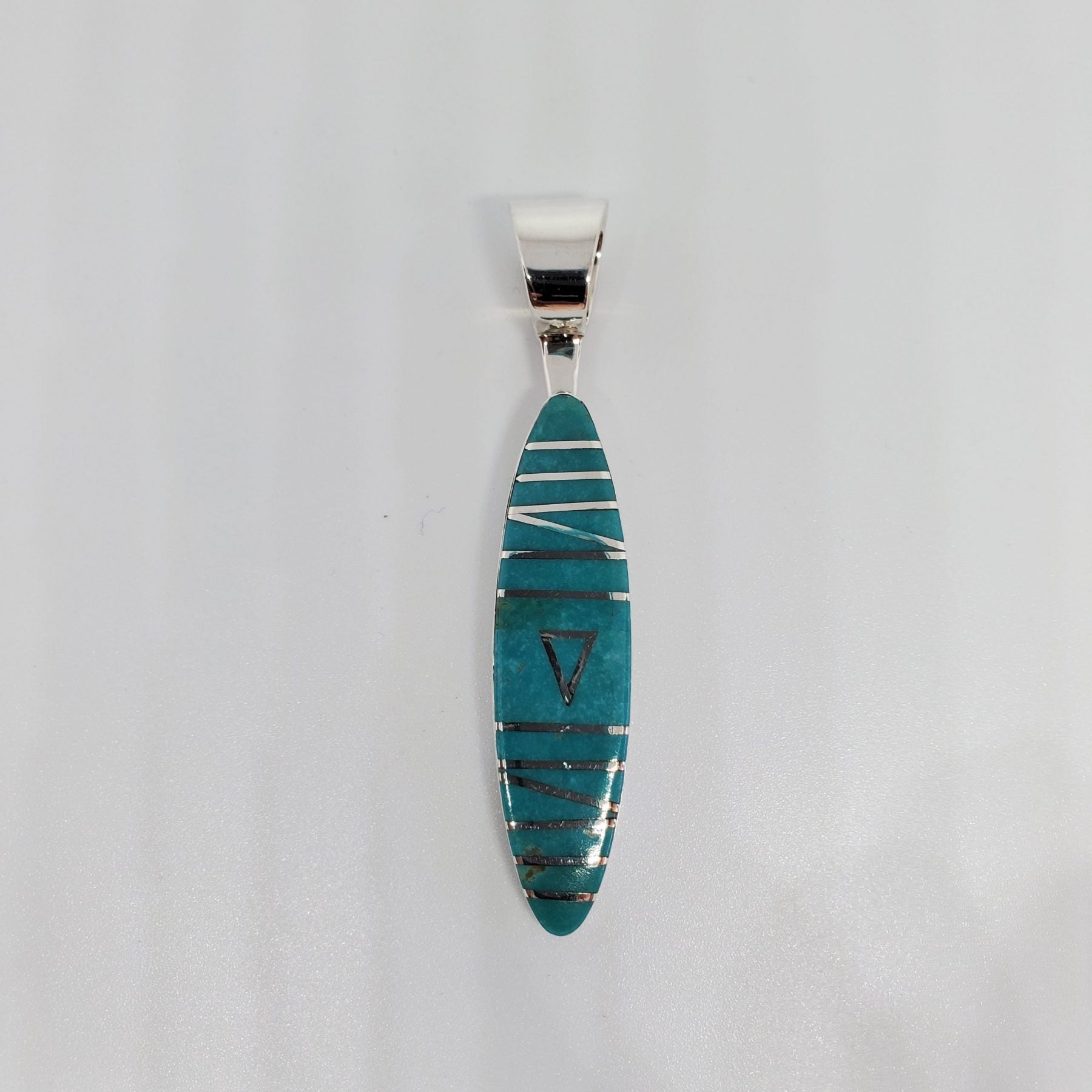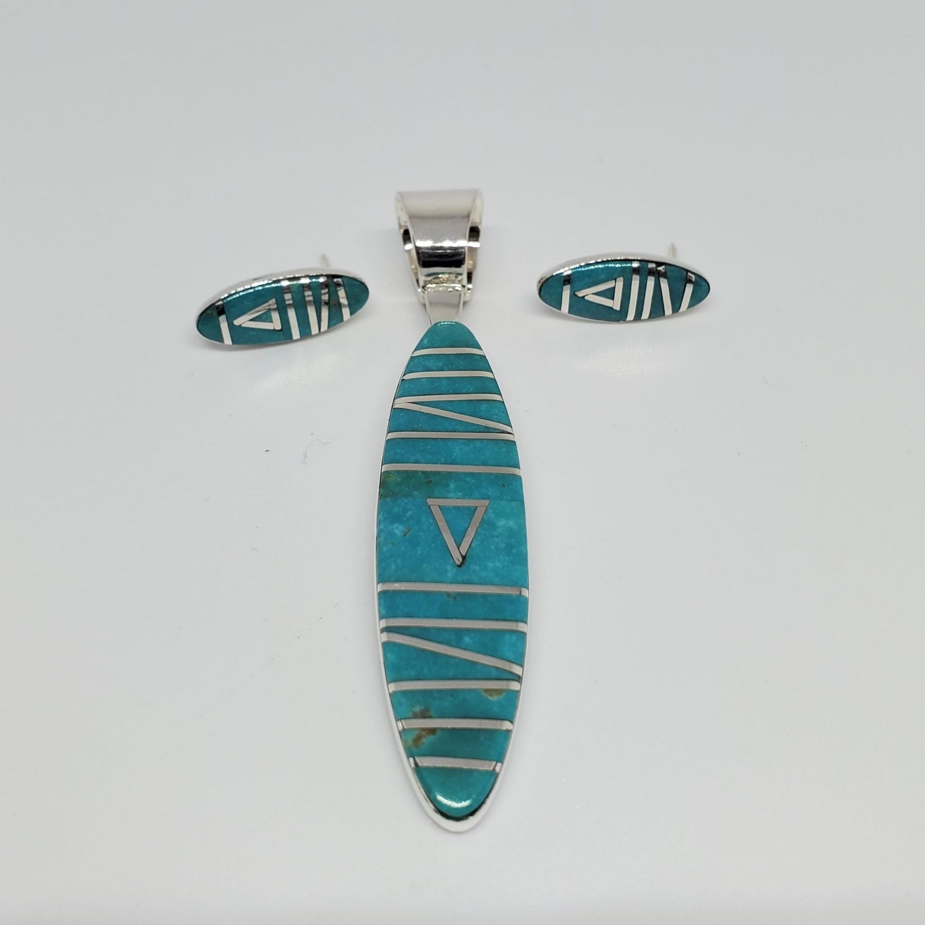 Green Turquoise Sterling Silver Pendant (2.95" L) and Earrings (.71" L) Gift Set. This pendant is quite large but balances beautifully when worn on either an omega choker or a long silver chain.