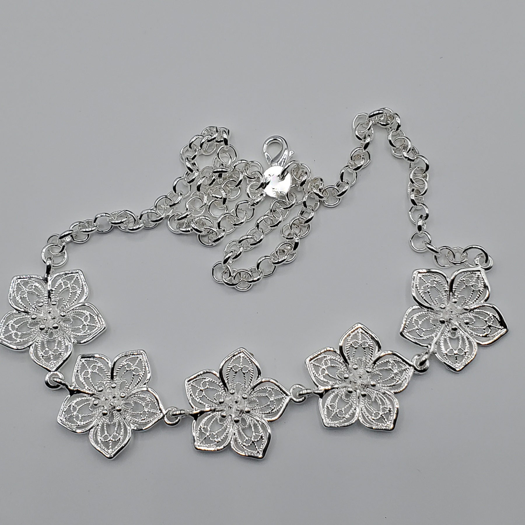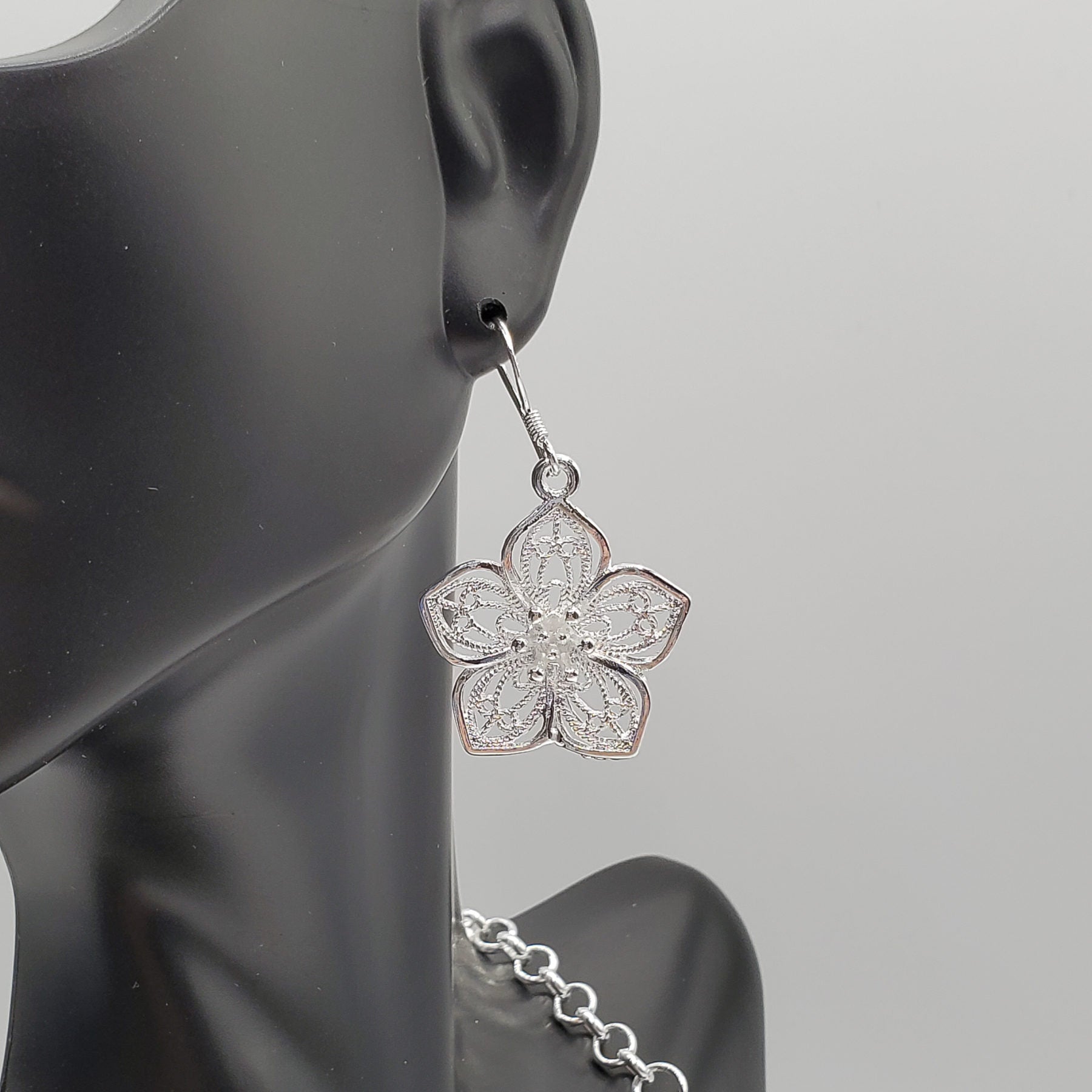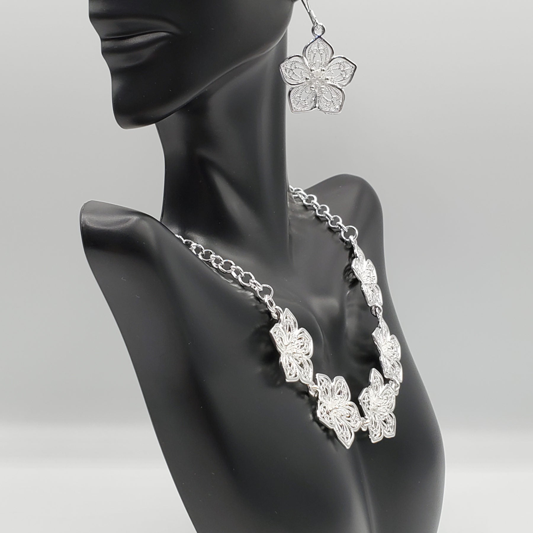 Vintage Style .925 Sterling Silver Hawaiian Flower Necklace and Earrings Set.