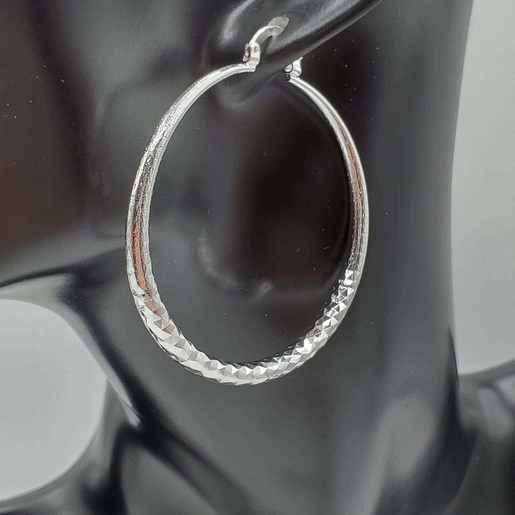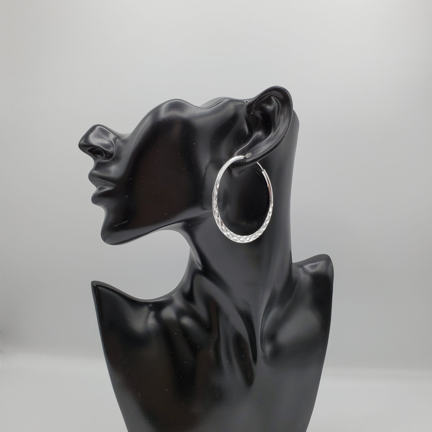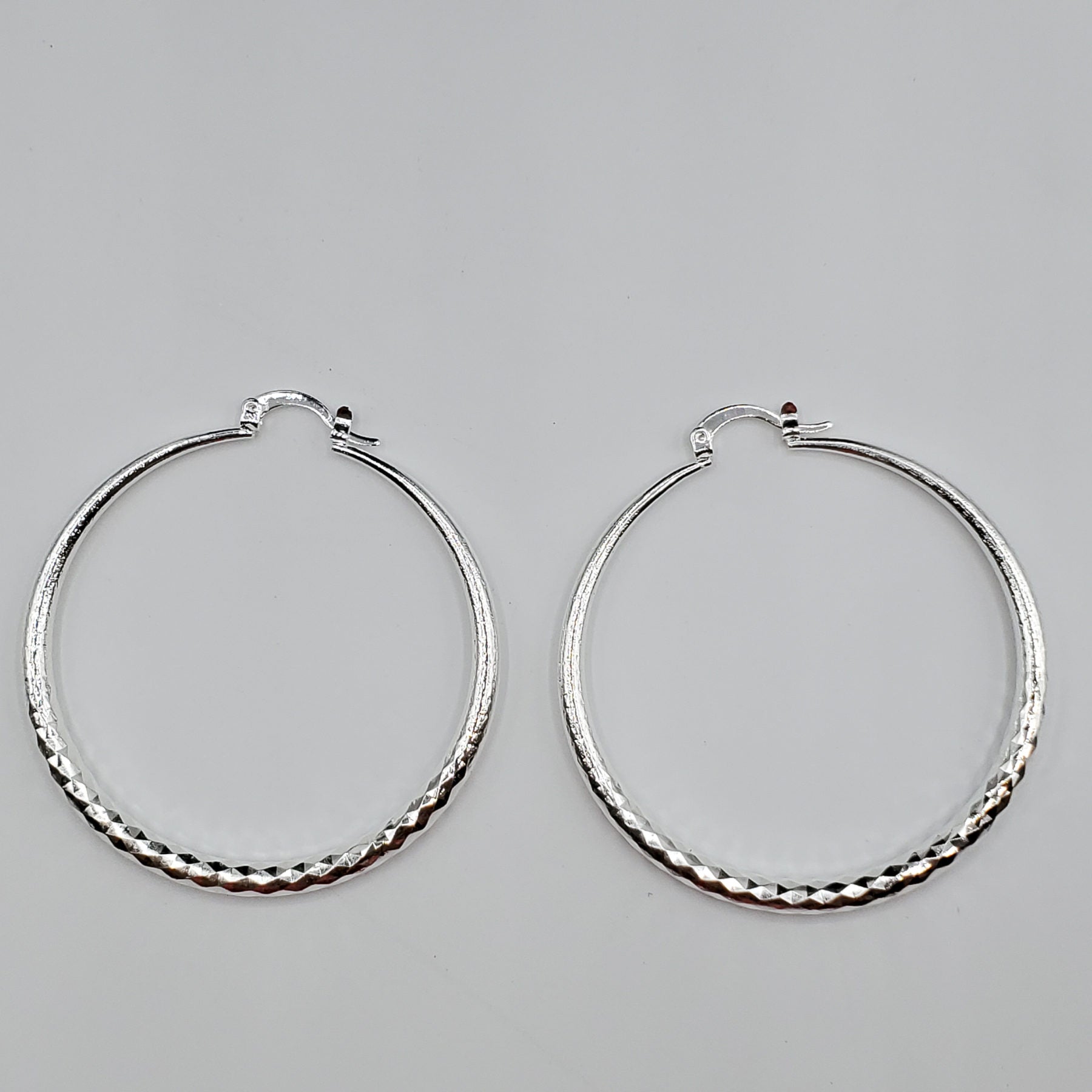 Vintage style .925 Sterling Silver textured large hoop earrings.